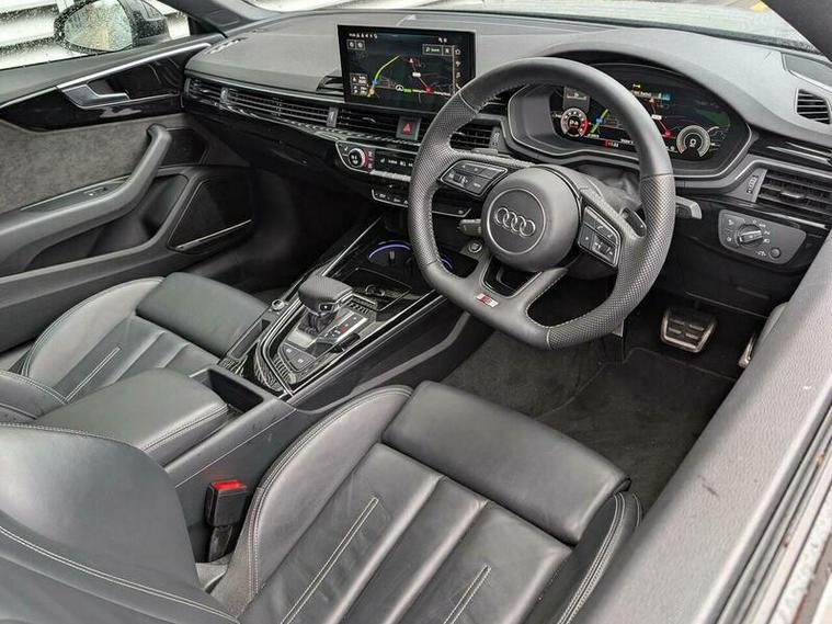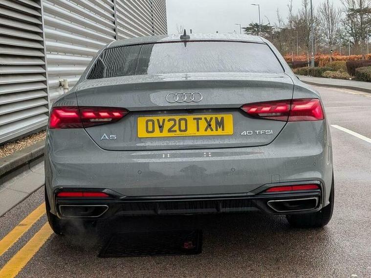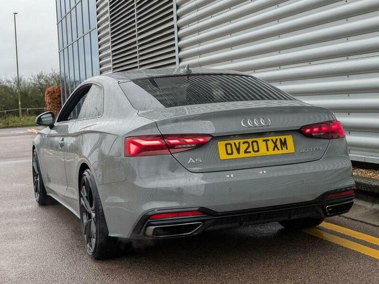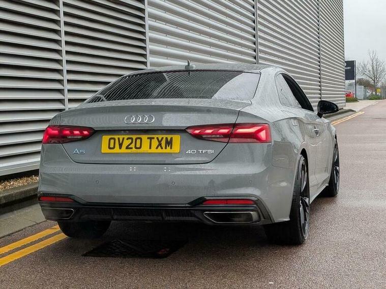 With only 30, 000 miles on the clock, this 2020 Audi A5 TFSI Edition 1 presents an exceptional example of a well cared for vehicle. This one owner car boasts a 2.0 litre petrol engine and meets Euro 6 emissions standards. It comes equipped with the desirable Comfort and Sound Package, which includes keyless entry, a luxury branded sound system, and 360 degree parking assistance. Further enhancing its sophisticated appeal are the Audi HD Matrix LED headlights featuring Audi Laser Light and dynamic front and rear indicators. Inside, you'll find the Audi Smartphone Interface for seamless connectivity with Android Auto and Apple CarPlay, alongside Deluxe 3 zone electronic climate control to ensure comfort for all occupants. A rear view camera is also included as part of the parking assistance suite.