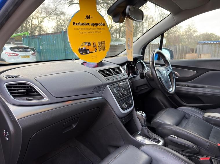 Finished in the beautiful BARACAY BLUE Metallic, this Mokka stands out with its FULL BLACK & GREY LEATHER INTERIOR with orange stitching & is complemented with a silver trim. It comes with a FULL SERVICE HISTORY & 2 keys. The original Vauxhall pouch & manuals are current. It has 3 former keepers. A NEW 12 MONTHS MOT WILL BE ISSUED UPON SALE