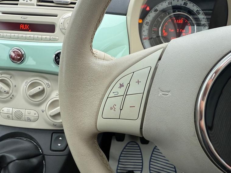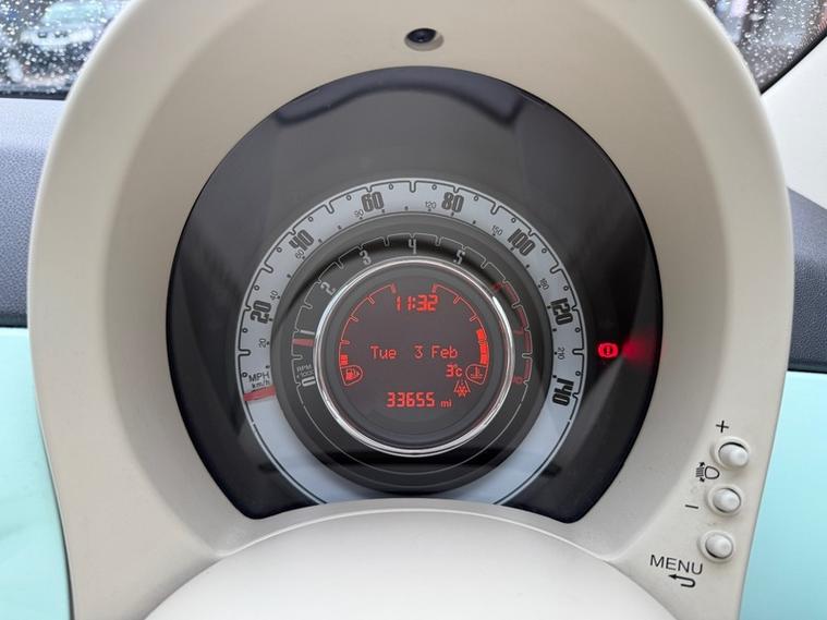 This 2014 Fiat 500 Lounge boasts exceptionally low mileage for its age. This well maintained example comes with a full service history, 2 keys, clear MOT and a clear vehicle history check. It is powered by an efficient 1.2L Euro 6 petrol engine and features desirable additions such as fog lights, air conditioning, and a fixed glass roof with a sunblind for an open feel. The Blue&Me hands free system with USB port adds modern convenience for your journeys.