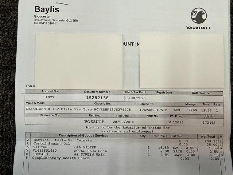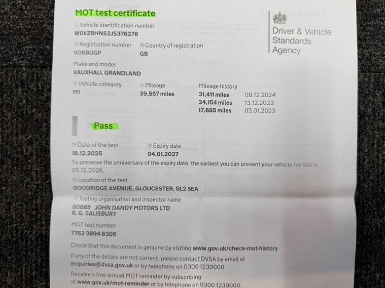 ABSOLUTE CARS have this 5 Door, VERY LOW MILEAGE, Vauxhall Grandland X 1.2 Turbo Elite Nav Euro 6 (s/s) in Metallic Grey with 19' Alloys & Full Leather Upholstery with Heated Front Seats ! Call in for a test drive, finance arranged & part exchange considered., 3 months warranty, Next MOT due 04/01/2027, Last serviced on 06/08/2025 at 37, 269 miles, Full service history, Black Full leather interior, 5 seats, Metallic Grey, 2 owners, Upgrades - 18in Emergency Steel Spare Wheel, Perforated Siena Leather - Black, Standard Features - 12V Electrical Accessory Socket, 19in Alloy Wheels - Five Twin Spoke - Diamond Cut, 230V Rear Power Outlet Behind Front Seats, ABS - Anti Lock Brakes, Airbags - Front Seat Side-Impact, Alloy Effect Protective Front and Rear Skid Plates, Ambient Centre Console Downlighter, Ambient Lighting in Front Doors, Anti-Submarining Ramps in Front Seats, Automatic Lighting Control, Automatically Dimming Anti-Dazzle Rear-View Mirror, Black Door Panels with Black Morrocana Inserts, Body Colour Door Mirrors, Body-Colour Door Handles with Chrome-Effect Insert, CSC - Corner Stability Control, Central Facia Display, Centre Rear Seat Head Restraint, Child Proof Locks on Rear Doors, Chrome Effect Front Grille Bar, Chrome Effect Interior Door Handles, Chrome Effect Upper Window Trim, Collapsible Windscreen Wiper System, Covered Storage Compartment in Centre Console and Drivers Armrest, Cruise Control with Speed Limiter and Intelligent Speed Adaptation, Dark Tinted Windows, Deactivation Switch For Front Passengers Front and Side Impact Airbags, Deformation Zones Front and Rear, Door to Door Illumination, Driver Information Display, Drivers Centre Armrest, Drivers and Front Passengers Airbags, Drivers and Front Passengers Sunvisors with Illuminated Vanity Mirrors, Dual Seatbelt Pretensioners on Front Seats, EBD - Electronic Brakeforce Distribution, Electric Parking Brake, Electrically Operated Front and Rear Windows with Safety Autoreverse and One-Touch Facility, Electronic Climate Control including Air Conditioning, Electronically Protected Audio Equipment, Energy Absorbing Steering Column, Engine Deadlock Immobiliser, Engine Drag Torque Control, Ergonomic Sports-Style Front Seats and Power Drivers Seat- AGR-Approved, Flex Floor with Under-Floor Divider, Four Adjustable Facia Vents, Front Door Pockets with 2.6litre Capacity, Front Door Sill Covers - Alloy-Effect, Front Fog Lights, Front and Rear Passengers Assist Handles, Fuel Gauge with Low Fuel Warning Light, Full Size Curtain Airbags for Driver - Front Passenger and Outer Rear Seat Passengers, Fully Carpeted Luggage Area, Gloss Black B-Pillars, Hazard Warning Lights, Head Restraints - Rear Height Adjustment, Heated Rear Screen with Timed Cut-Off, Height Adjustable and Removable Head Restraints, Height-Adjustable Front Seat Head Restraints, High-Level Centre Brake Light, Hill Start Assist, Hydraulic Brake Assist, Illuminated Luggage Area, Inertia-Reel Lap and Diagonal Seatbelts, Interior Courtesy Light Operated By Door Switches, Intermittent Rear Window Wipers with Washer, Keyless Entry and Start, LED Daytime Running Lights, LED Tail Lights, Lights On Audible Warning, Load Limiters Outer Rear Seatbelt Retractors, Locking Wheel Nuts, Luggage Compartment 12V Electrical Accessory Socket, Luggage Compartment Cover, Multi-Function Trip Computer, Navi 5.0 Intellilink Touchscreen Navigation and Infotainment System, Park and Go Pack Three, Power Tailgate, Premium LED Adaptive Forward Lighting, Pretensioners on Outer Rear Seatbelt Retractors, Rain Sensitive Windscreen Wipers, Rake and Reach Adjustable Steering, Reading Lights - Rear, Rear Door Pockets with 1.8litre Capacity, Rear Fog Light, Rear Passenger Compartment Heating Ducts, Rear Spoiler, Reinforced Passenger Safety Cell, Remote Control Central Locking, Remote Control Security Alarm System, Rev Counter, Reversing Lights, Safety Pack, Seats - Rear Split Folding 60-40, Shift Up Indication Light, Side Blind Spot Alert, Side Impact Protection Beams, Side Protection Mouldings, Side Window Demist Vents, Sight and Light Pack, Six Speakers - Four Front-Two Rear, Smart Seatbelt Reminder for Front and Rear Seats, Sound Absorbing Windscreen, Speed Sensitive Electrically Assisted Power Steering, Speed Sign Recognition, Speedometer, Steering Wheel - Three-Spoke Design - Leather Covered - Satin Chrome-Effect Bezel, Steering Wheel Mounted Audio Controls, Storage Pocket on Front Seat Backs, Switchable Electronic Stability Programme - ESP, Tinted Windows, Toba Grey Facia and Door Panel Inserts, Traction Control, Twin Electrically Adjustable - Heated - Foldable Door Mirrors - Wide-Angle on Drivers Side with Automatic Timed Cut-Off, Two Drinks Holders in Centre Console, Two Speed Windscreen Wipers with Variable Intermittent Wipe, Tyre Pressure Deflation Detection System, Upper and Lower Bumper Design, VIN - Visible Vehicle Identificatio