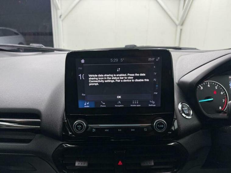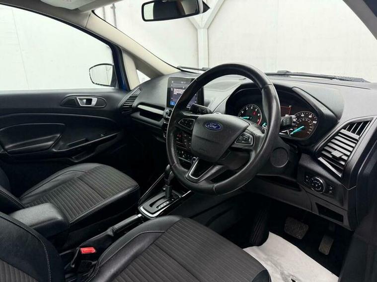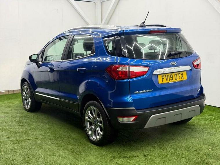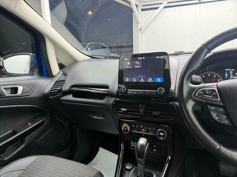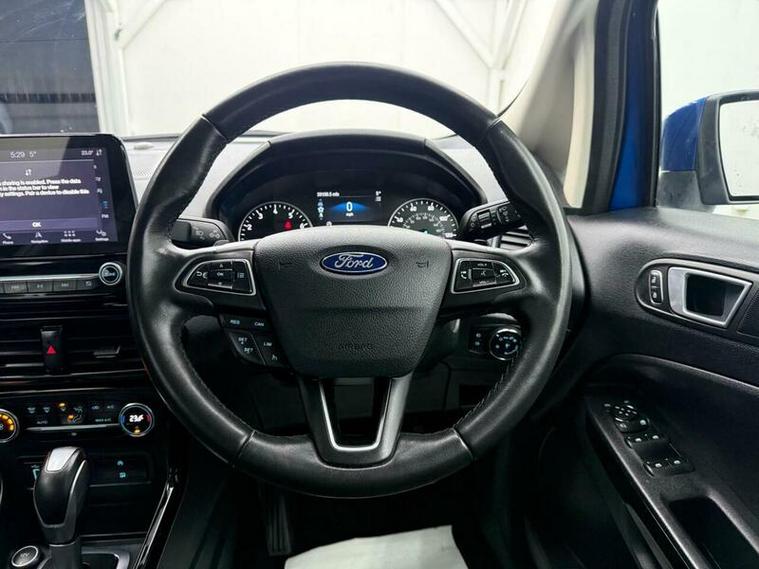 Discover this 2019 Ford EcoSport T Titanium, a well maintained example with remarkably low mileage for its age, having covered just 39171 miles. This Euro 6 compliant 1.0L petrol model offers a refined driving experience, with MOT expiring on Jan/27 and supplied with fresh service for your peace of mind. The Titanium trim level ensures a host of desirable features, including automatic headlights that illuminate your path, and a rear view camera pack complete with parking sensors to assist with manoeuvring.