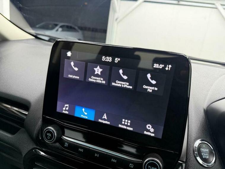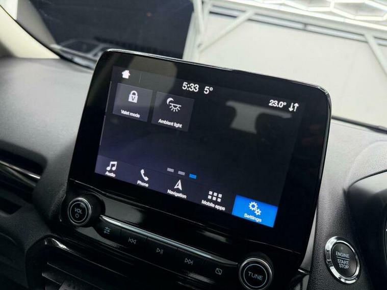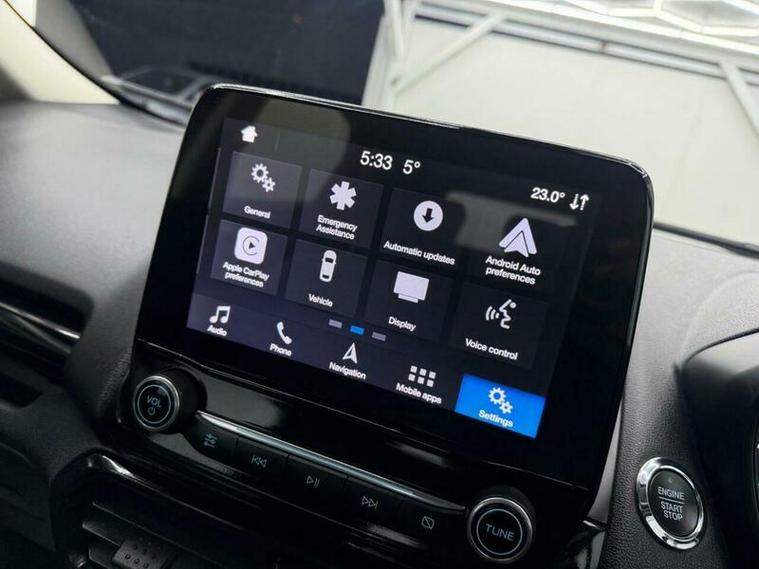 This EcoSport stands out with its advanced Ford SYNC 3 Navigation system, featuring an 8 inch touchscreen that seamlessly integrates with Android Auto and Apple CarPlay, keeping you connected and on course. Parking is made simpler with the rear view camera and rear parking sensors, part of the comprehensive Rear View Camera Pack. Furthermore, its low CO2 emissions highlight its efficiency, making it a considerate choice for your motoring needs.