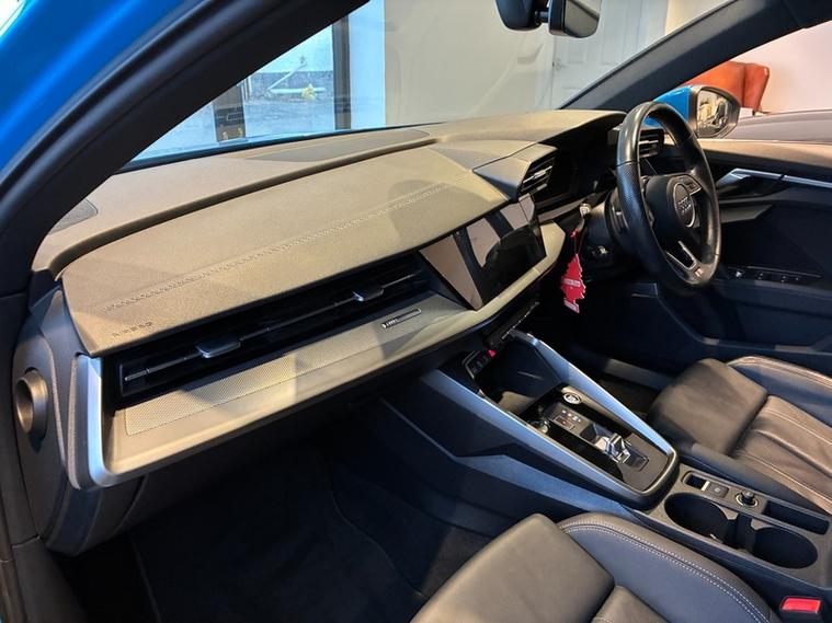 +Free 12 Months Extended Warranty and 12 Months AA Cover+ This Stunning A3 is a joy to drive, it looks stunning in Blue with the contrasting Black Leather Sline Interior.The S line trim enhances its appeal, and it boasts the desirable Comfort and Sound Package, which includes a luxury BANG & Olufsen sound system, the Virtual Cockpit just adds to the driving experience. heated seats, CAR PLAY and Sat-NAV with DAB RAdio and Bluetooth, parking assistance with front and rear sensors and a rear camera. Further enhancing the driving experience are LED headlights with dynamic rear indicators, dual zone electronic climate control, and a light and rain sensor for automatic headlight activation. . the car comes with 2 keys a full history that just been done including a new mot and new tyres, the car also has 12 months AA Cover and a 12 Month Extended warranty all for your peace of mind, this trully stunning and great value A3 is ready to test drive and take home today.