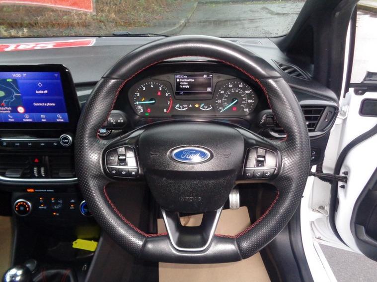 THIS GREAT FIESTA ST LINE EDITION COMES WITH WARRANTED MILES AND A SERVICE SHEET , THE SPEC INCLUDES 17' GREY ALLOYS, SAT NAV HDD, PRIVACY GLASS, PARKING SENSORS, BLUETOOTH INCLUDING PHONE CONNECTION MUSIC STREAMING, CRUISE CONTROL, AIR CON AND HEATED WINDSCREEN. THIS CAR COMES WITH A NEW MOT ON PURCHASE, 3 MONTH FREE WARRANTY & A FREE AA BREAKDOWN COVER., NO ADMIN FEES