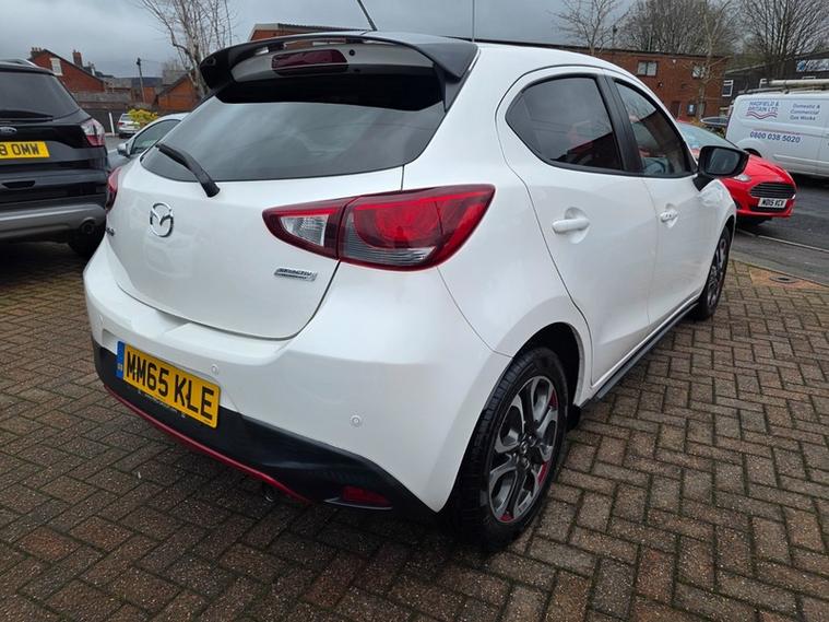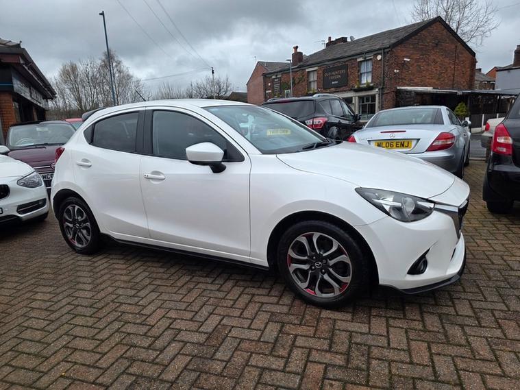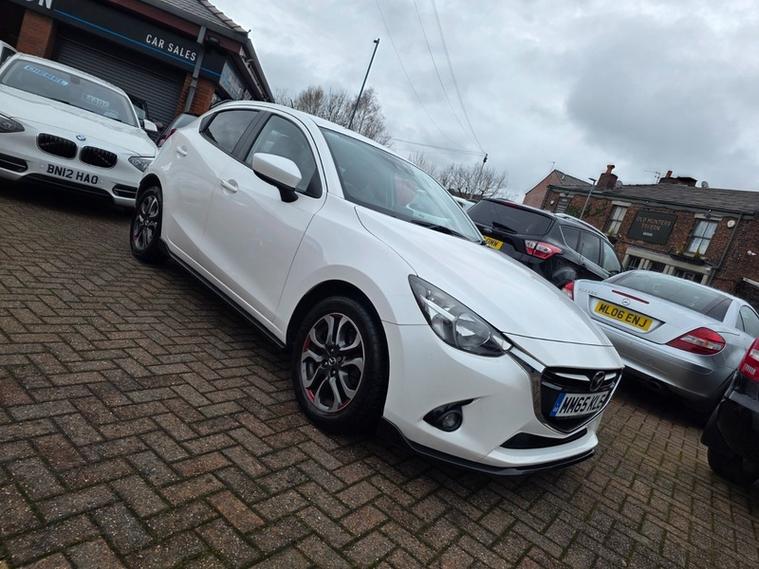 Steve Pearson Car Sales are Pleased to Present this Low Mileage Mazda 2 1.5 Sport Nav 5 Door in White. Only One Private Owner with Full Service History. **£20 Road Tax** All usual Mazda refinements include... ABS, air conditioning, Sport seats, alloy wheels, cd player, central locking, cruise control, cup holders, electric windows/mirrors, automatic headlights, 12v power socket, USB/AUX input, bluetooth, body coloured bumpers, brake assist, daytime running lights, front airbags, front fog lights, heated door mirrors, hill start assist, ISOFix anchor point, keyless door locks, mp3, touch screen media system, radio, satellite navigation, parking sensors, side impact airbags, speakers, steering wheel controls, traction control etc.... Looks and Drives superb. A stunning example with great additional features. This car comes with 2 keys, professionally valeted and fully HPI checked. We welcome Part Exchange and can offer Great Finance Deals, Please take a look at our virtual showroom at dealer's website where we have over 50 cars in stock, for more information please telephone or pop in for a cup of tea! Our showroom and floodlit forecourt are open 7 days a week, Tameside's Finest Collection of Low Mileage Quality Cars.