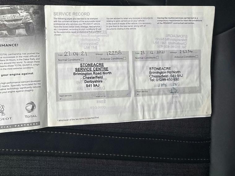 This car comes with 5 seats, Grey, 2 owners, 1-3 - 2-3 Folding Rear Seat - Magic Flat Modularity with Controls Accessible From the Boot, 12V Sockets x3 - Dashboard - Rear Cabin and Load Area, 180 Degree Colour Reversing Camera with Wash System, 19in Alloy Wheels - Washington - Diamond Cut - Two Tone, 230V Socket, 3D Connected Navigation, 6-Speaker Radio - MP3 Compatible, ABS - Anti-Lock Braking System with REF - Electronic Braking Distribution and AFU - Emergency Braking Assistance, Aikinite Contrast Stitching to Armrest - Gear Lever Gaiter and Dashboard Facia, Air Conditioning - Automatic Dual Zone Climate Control, Airbags - Adaptive Driver and Front Passenger, Airbags - Driver and Front Passenger Side, Airbags - Front and Rear Curtain, Alarm, Aluminium Longitudinal Roof Bars, Automatic Door Locking When Moving Off, Automatic Hazard Light Activation Upon Heavy Brake Application, Blue Ambient Lighting for Connecting Zone, Blue Ambient Lighting to Front Door Panels - Central Storage and Cupholders, Blue Ambient Lighting to Head-Up Instrument Panel, Bluetooth Telephone Facility, Body Protectors in Black, Central Front Armrest with Butterfly-Wing Opening and Illuminated Compartment, Chrome Front Fog Light Trim, DAB Digital Radio, DSC - Dynamic Stability Control and ASR - Electronic Anti-Skid System, Dark Tinted Rear Side and Tailgate Windows, Dashboard - Front and Rear Door Panel Finish - Brumeo Fabric, Dashboard Trim - Satin Chrome, Door Mirror Mounted LED Peugeot Lion Approach Lights, Door Mirror Shells - Nera Black, Driver Sport Pack, Electric Child Locking Functionality on Rear Windows and Doors, Electric Parking Brake includes Hill Assist, Electric Power Steering with Reach and Rake Adjustable Steering Column, Electronic Code Immobiliser, Exterior Door Handles - Body-Colour, Exterior Temperature Indicator with Ice Warning, Fixing Rings x4 in Load Area, Flocked Front Door Pocket Interior, Flocked Glove Box Interior, Front Bumper Scuff Plate in Lion Grey, Front Central Console with Two Cup-Holders, Front Door Panel Recess Trim - Satin Chrome, Front Interior Light with Reading Spotlights x2 and Rear Interior Light with Timer, Front Optimised Safety Headrests and Rear Retractable Headrests - x3 - Height-Adjustable, Front Three-Point Retractable Seatbelts - Height-Adjustable with Pre-Tensioners and Force Limiters, Front Windscreen Wiper with Magic Wash Cleaning System, Front Wing Trim - Black with Chrome Detail, Front and Rear Parking Sensors, Full LED Headlights, GT Line Emblems in Satin Copper - Front Wings and Tailgate, Gear Lever - Satin Chrome, Gear Shift Indicator, Gloss Black B and C Pillar and Aerodynamic Deflector Trim, Gloss Black Rear Cluster Connecting Strip, Gloss Black Windscreen Trim, Grab Handles x4 - Retractable - Damped, Headlights Left On Audible Warning, Heated Front Seats and Driver Seat Multi-Point Massage Function, Heated Rear Windscreen with Integrated Antenna, ISOFIX Child Seat Fittings - x3 - In the Front Passenger and Outer Rear Seats, Illuminated Glove Box, Illuminated Vanity Mirrors, Interior Door Handles - Satin Chrome, LED Daytime Running Lights Built into the Headlight Unit, LED Foglamps including Static Cornering Function, LED Interior Lighting - Roof - Storage Spaces - Load Area, LED Sequential Scrolling Front Indicators, LED Side Indicator Lights Integrated into Door Mirrors, Lane Departure Warning System, Map Pockets on Front Seat Backs, Mechanical Height-Adjustable Drivers Seat, Mirror Screen, Mistral Black Floor Mats with Aikinite Contrast Stitching, Mistral Full-Grain Perforated Leather Steering Wheel with Aikinite Stitch Detail and Satin Chrome GT Line Emblem, Multifunction Trip Computer, One-Touch Electric Front and Rear Windows with Pinch Protection, PEUGEOT Open and Go System, Panoramic Opening Glass Roof, Peugeot Connect SOS and Assistance, Peugeot i-Cockpit, Power Folding Door Mirrors - Includes LED Courtesy Approach Lights, Programmable Cruise Control and Speed Limiter, Radiator Grille - Chrome Edge Trim with Chequered Design and Black Peugeot Lettering, Reading Spotlights x2 in Rear, Rear Armrest with Ski Flap and Two Cup Holders, Rear Bumper Facia - Chrome, Rear Centre Console Ventilation System, Rear Coat Hooks x2, Rear LED Peugeot Signature Claw Effect Lights - With Daylight Function, Rear Number Plate Lights x2, Rear Spoiler - Body Colour with Stainless Steel Edging Trim, Rear Three-Point Retractable Seatbelts x3 - with Pre-Tensioners and Force Limiters in the Outer Rear Seats, Rear Windscreen Wiper Triggered Automatically in Reverse Gear, Remote Control Central Locking, Roof - Black Diamond, Roof Lining - Mistral Black, Safety Pack, Safety Plus Pack, Satin Chrome Digital Instrument Panel and Touch Screen Trim, Scorpions Tail and Toggle Switch Trim - Satin Chrome, Seatbelt Unfastened on the Move Audible and Visual Alert for Front and Rear Seats, Seatbelt not Fastened Audible and Visual Alert for Front Seats, Seating - Driver Seat Lumbar Adjustment, Seating - Driver Seat Manual Adjustment - Longitudinal and Back Rest Angle, Seating - Driver and Front Passenger Seat Height Adjustment, Seating - Front Passenger Seat - Flat Folding with Picnic Table, Seating - Front Passenger Seat Manual Adjustment - Longitudinal and Back Rest Angle, Self Levelling Headlights, Side Window Trim - Chrome, Smart Electric Tailgate, Smartphone Charging Plate, Speed Limit Recognition and Recommendation, Sports Front Bumper Design, Stainless Steel Door Sill Scuff Plates, Stainless Steel Roof Arch Trim, Steel Space Saver Spare Wheel, Twin Exhaust Effect Trim, Two-Position Boot Floor, USB Socket, Visibility Pack, Voice Recognition - Radio-Navigation-Telephony Features,