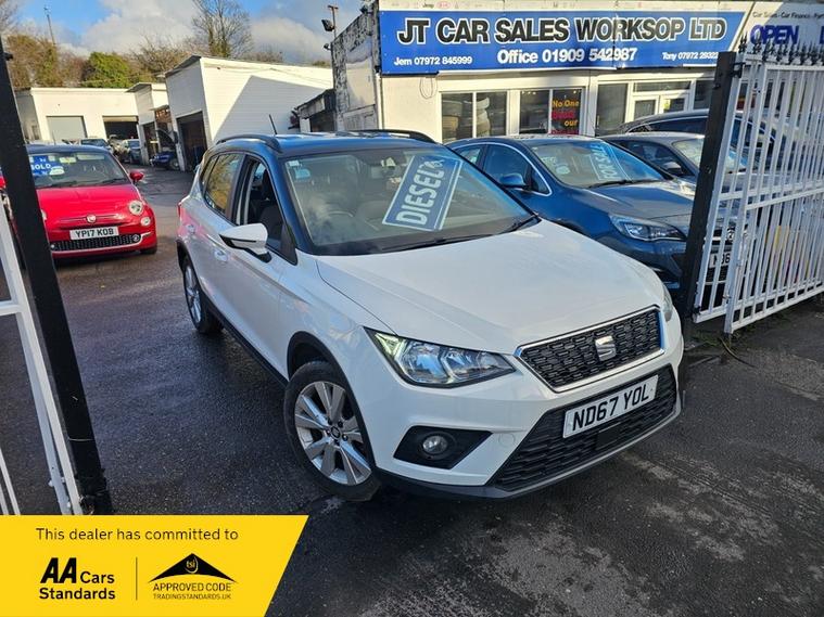 This 2018 SEAT Arona TDI SE is a well maintained example with a clear vehicle history check. It features a 1.6 litre Euro 6 diesel engine and comes in the SE trim. For your convenience, this Arona is equipped with Bluetooth audio streaming and a handsfree system, automatic headlights, and air conditioning., , This Arona offers excellent running costs, with an impressive fuel economy of 57 miles per gallon and low CO2 emissions, making it a more economical choice compared to similar vehicles. Furthermore, its low insurance group rating indicates that it is also more affordable to insure., , , SEAT Arona 1.6 TDI SE Euro 6 (s/s) 5dr - in good working order, starts and drives well, in nice colour white, ideal size family car, low tax and insurance groups, 12 months MOT, Good bodywork, Interior - Clean Condition, Tyre condition Good, 5 seats, White, 2 owners, 17in Alloy Wheels - Dynamic, Active Front Head Restraints, Air Conditioning, Anti-Lock Braking System - ABS, Anti-Theft Roof Antenna, Auto-Headlights, Automatic Warning Lights, Black Window Trim, Bluetooth Audio Streaming with Handsfree System, Body-Coloured Door Handles, Child Locks on Rear Doors, Comfort Suspension, Cruise Control, DAB - Digital Radio, Digital Clock, Dimming Interior Rear View Mirror, Double Boot Floor, Driver Sunvisor with Mirror and Card Holder, Driver and Front Passenger Airbags, Dust and Pollen Filter, ESC - Electronic Stability Control with EBA - Emergency Brake Assist, Electric Windows - Front and Rear with One-Touch and Anti-Squeeze, Electrically Adjustable Door Mirrors, Electro-Mechanical Power Steering - Speed-Sensitive, Electronic Engine Immobiliser, Emergency Tyre Repair Kit, FM-AM Radio, Front Assist, Front Courtesy Light with Front and Rear Reading Lights, Front Fog Lights with Cornering Function, Front Grille Frame in Chrome, Front Passenger Airbag De-Activation, Front Side and Curtain Airbags, Front and Rear Seatbelt Reminder, Gearshift Indicator, Halogen Taillights, Height Adjustable Drivers Seat, Height Adjustable Front Passenger Seat, Height and Reach Adjustable Steering Wheel, Hidden Exhaust Pipe, Hill Hold Control, ISOFIX Points in Outer Rear Seats with Top Tether Anchorage Points, Illuminated Boot, Instrument Lighting with Brightness Control, Interior Ambient Light, Interior Chrome Pack, Interior Footwell Light, LED Daytime Running Lights, LED Licence Plate Lighting, Leather Handbrake, Leather Steering Wheel and Gear Knob, Lights Left On Warning Buzzer, Locking Wheel Bolts, Low Fuel Warning Light, Media System Colour, Multi-Collision Braking System, Outside Temperature Gauge, Passenger Sunvisor with Mirror and Card Holder, RPM Counter, Rear Fog Light, Rear Window Wiper with Washer, Remote Central Locking with Deadlocks, Roof Rails - Black, Six Speakers, Split Folding Rear Seats - 60-40, Three-Point Seatbelts on All Rear Seats, Tiredness Recognition System, Trip Computer, Twin-Bulb Front Halogen Headlights with Electrical Adjustment, Two Cup Holders in Cabin, Two Folding Remote Keys with Remote Window Opening-Closing Function, Two Front and Three Rear Height-Adjustable Headrests, Tyre Pressure Monitoring System, Visible VIN in Windscreen, Windshield Wiper with Intermittent Control and Potentiometer - Four Speeds, JT Car Sales Worksop LTD is a family run business Est in 2014. Selling quality used cars at affordable prices, we offer Warranty Wise and Finance on all our vehicles - We can finance cars at any prices, please ask office for more details - FINANCE AVAILABLE, we take in part exchange towards any of our cars, we are a AA dealer approved company, we make sure all our cars come with a minimum 6 months mot, test drive / inspection welcome any time, HPi report can be requested on any vehicles, we aim to provide the best service possible - we help all our customers in office to complete all docs at the point of sale and can help with insurance if needed, All list if stock vehicles can be find on our profile page / website - you can find us on 118 Gateford road, Worksop, s80 1ue, dealer's website We include ( All Cars ) 12 Months AA Breakdown Cover + 3 Months Dealer Warranty ( Plus Extended Warranty Options ) + NATIONWIDE DELIVERY Options Available - Please ask for more details - you can contact us directly on watts app line 01909842672 / All cars come with full car valets / polish, if any cars looks little dirty in photos interior / exterior it will be fully cleaned before sale, also any marks round body work we can tidy them up as much as possible ** OPEN 7 DAYS **?Car Stock . 71 - ND67YOL