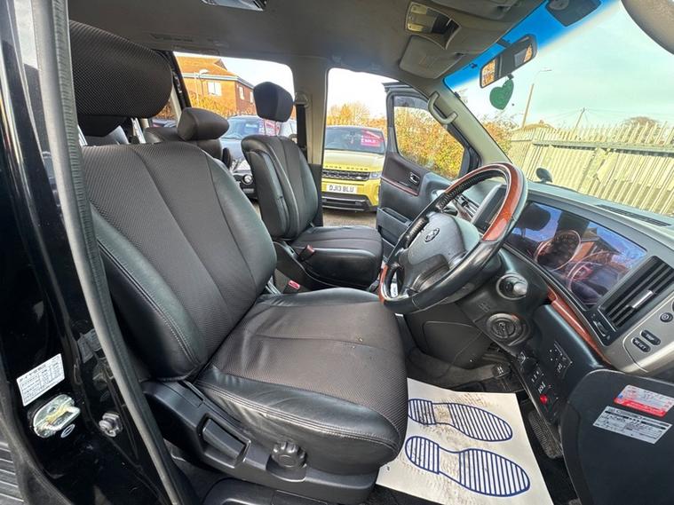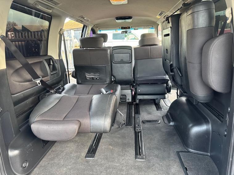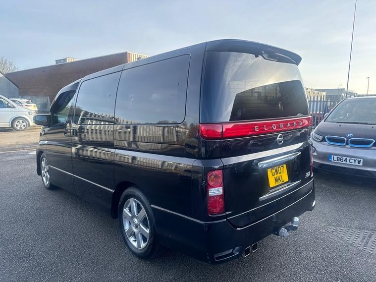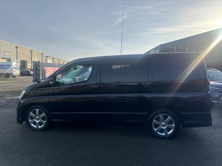2007 Nissan Elgrand Highway Star in Black with Green/purple flip pearlescent paint. Runs and Drives brilliantly. 2020 Japanese Import and as expected the underside is in fantastic condition. 180, 000KM (111, 000 Miles). Highly practical 8 seater which still provides a spacious boot space. ULEZ Compliant. This is the 2.5 litre petrol Elgrand which is more fuel efficient than the 3.5 petrol also used in this model. Pioneer head unit with Bluetooth connectivity, Reverse camera, Working air conditioning, Electric sliding passenger door, Keyless entry/exit with stop/start, 17 inch alloy wheels, Tow-bar with electrics, Spare wheel, Privacy glass and more. Stunning Pearlescent flip paint which sparkles green and purple in the sunlight against the black in darker light. Overall condition is good but expect some minor cosmetic imperfections for a 19 year old MPV. 12 Months MOT, Service and 6 Months Warranty. A great value 8 seater automatic with Nissan reliability.