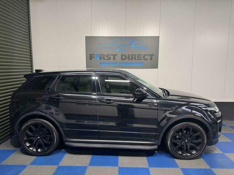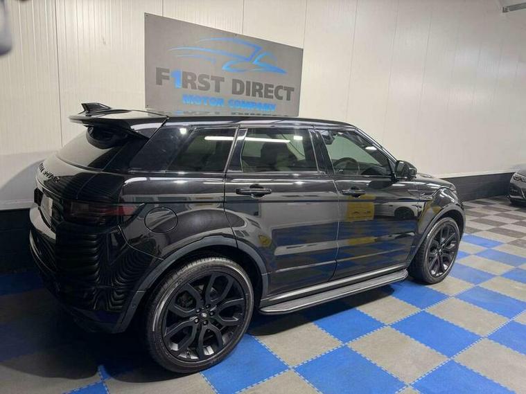 Finished in sleek Black, this Range Rover Evoque comes with a range of extras that truly set it apart. The Black Design Pack, Privacy Glass, and 20in Alloy Wheels - 5 Split Spoke - Style 508 - Satin Black Finish give it a distinctive and stylish look. The Contrast Painted Roof with Matching Spoiler in Santorini Black adds a touch of sophistication.