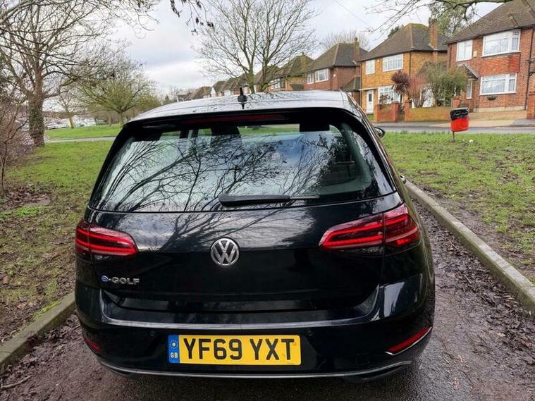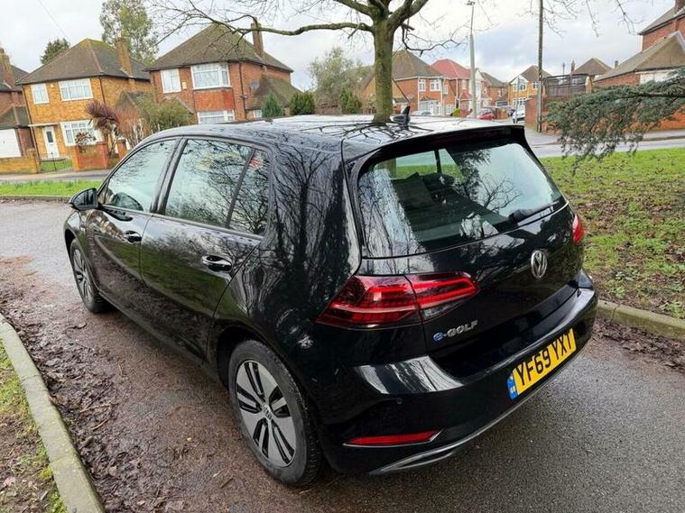The Volkswagen e-Golf boasts a large boot space, making it a practical choice for everyday use and longer journeys. Its electric powertrain offers an efficient and smooth driving experience, distinguishing it from conventional petrol or diesel cars. The adaptive cruise control system allows the vehicle to maintain a set speed and distance from the car in front, reducing driver fatigue on motorways. Combined with the automatic headlights and parking sensors, these features contribute to a safer and more comfortable drive, highlighting the e-Golf's thoughtful design and advanced technology.