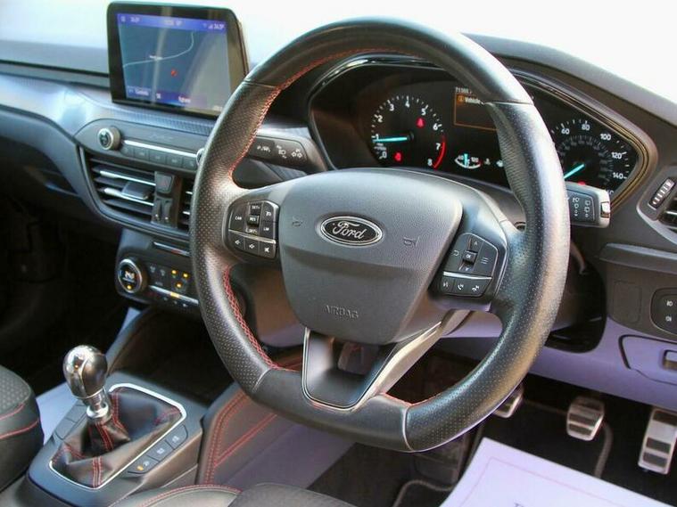 This 2019 Ford Focus T ST-Line X boasts a full service history and comes with a brand new service and MOT. This Euro 6 compliant model is powered by an efficient 1.5 litre petrol engine and features the desirable ST-Line X trim. Inside, you'll find comfort and convenience with automatic temperature control, heated front seats, cruise control, front and rear parking sensors, driving modes, plus much more. It also comes with excellent SYNC3 DAB navigation system, which includes Android Auto, Apple CarPlay, and Bluetooth connectivity.