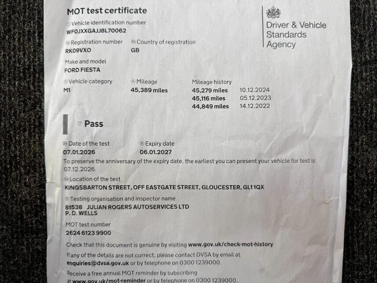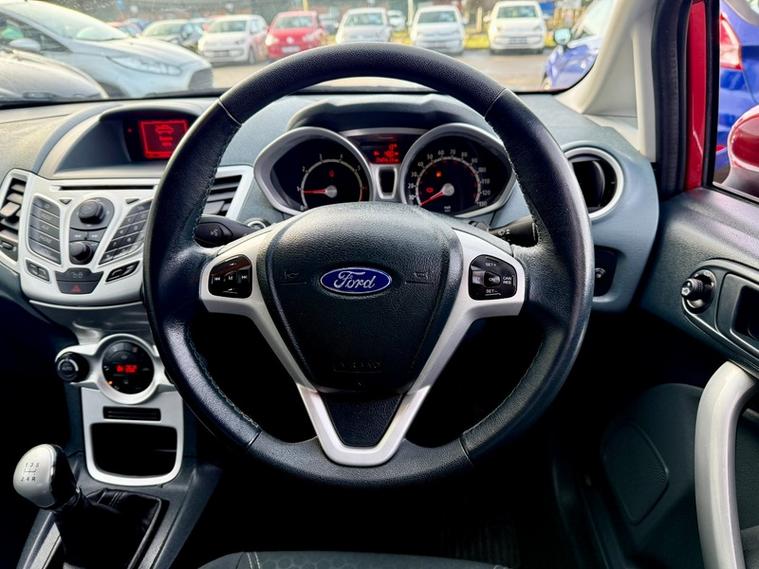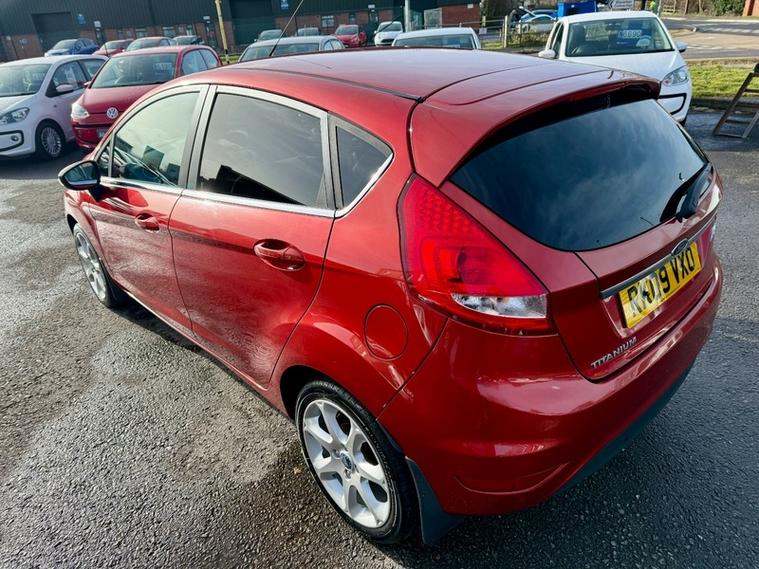 ABSOLUTE CARS have this 5 Door Ford Fiesta 1.4 Titanium in Metallic Red with Alloys. *CAMBELT REPLACED 09/12/2019 at 43, 699 miles* Call in for a test drive, finance arranged & part exchange considered., 3 months warranty, Next MOT due 06/01/2027, Last serviced on 06/01/2026 at 45, 388 miles, Part service history, Grey Cloth interior, 5 seats, Metallic Red, 4 owners, Upgrades - Metallic Paint, Metallic Paint - Hot Magenta, Standard Features - 16in - Alloy Wheels, 2 Front Speakers, ATC Air Conditioning, Airbag - Driver, Airbag - Driver Seat Head Thorax, Airbag - Front Passenger, Airbag - Front Side, Airbag - Knee Driver, Anti-Lock Brakes (ABS) and Emergency Brake Distribution (EBD), Auto Headlamps, Auto Wipers, Auto Wipers inc. Auto Headlamps, Body Colour Rear Spoiler, Bumpers - Body Colour, Carpet Mats, Centre Rear Seat Belt, Cruise Control, Door Mirrors - Electrically - Operated and Heated, Power Foldable, Driver Seat Height Adjust, Electronic Brake Force Distribution (EBD), Front Fog Lights, Head Restraints Front/Rear, Heated Rear Screen, Immobiliser, Leather Gearknob, Leather Steering Wheel, Map Reading Lights/Aesthetic Lighting, Perimeter Alarm, Power - Assisted Steering, Premier Alarm, Privacy Glass, QuickClear Heated Windscreen, Quickclear Heated Windscreen, Radio/CD, MP3 Compatible with 2-Line Display and Aux In, Reach and Rake Steering Wheel, Rear Wash/Wipe, Remote Control for Audio, Remote Double Locking, Second Remote Ignition Key, Split Rear Seats, Third Brake Light, Trip Computer, Tyre Mobility Kit, Upholstery Cloth, Windows - Power Front One-Shot, AS WE ARE AN AA CARS DEALER THIS VEHICLE COMES WITH 12 MONTHS AA BREAKDOWN COVER.
