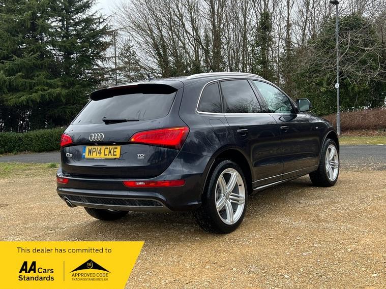 HERE FOR SALE WE HAVE THE EVER POPULAR AUDI Q5 S LINE QUATTRO S LINE. THIS 1 OWNER VEHICLE IS FINISHED IN DARK METALLIC BLUE WITH CONTRASTING BLACK S LINE EMBROIDERED INTERIOR, HEATED FRONT SEATS, MEMORY SEATS, FULL ELECTRIC PACK INCLUDING INTERIOR MIRROR, WING MIRRORS, ROOF BLIND AND TAILGATE. PANORMAIC ROOF WITH BLIND, PRIVACY GLASS, REAR ISOFIX, ORIGINAL AUDI S LINE FLOOR MATS, 2 KEYS, FULL SERVICE HISTORY, SAT NAV, DAB RADIO, STOP START FUNCTION, ADDITIONAL AUDI GERNUINE ROOF RAILS, DAY RUNNING LIGHTS, UPGRADED ALLOY WHEELS WITH GREAT PREMIUM TYRES, KEYLESS ENTRY, CLIMATE CONTROL AND FULL WINTER PACK OPTION. THIS BEAUTIFUL 1 OWNER Q5 IS IN STUNNING CONDITION AND MUST BE SEEN TO BE APPRECIATED, LOW MILEAGE. WE ARE BASED AT 513 STOCKWOOD ROAD BS4 5LR, 01173683458 PLEASE GIVE ONE OF OUR SALES TEAM A CALL FOR MORE INFORMATION