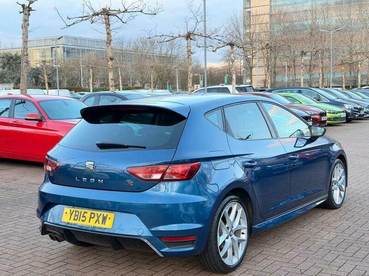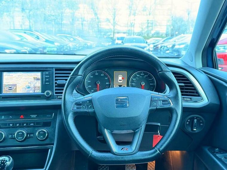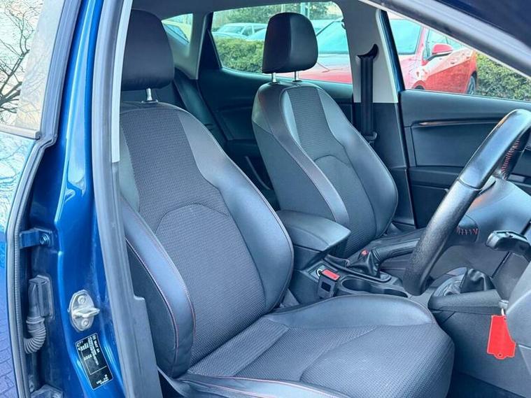 This 2015 SEAT Leon TSI FR is a superb example, having been owned by just one careful keeper from new. This particular model boasts the sporty FR trim and is powered by an efficient 1.4 litre petrol engine, meeting Euro 6 emissions standards. You'll find parking made simple with front and rear parking sensors, complemented by an optical parking system. Stay connected on the go with both Bluetooth audio streaming and an integrated handsfree system, all while enjoying the generous boot space this Leon offers.