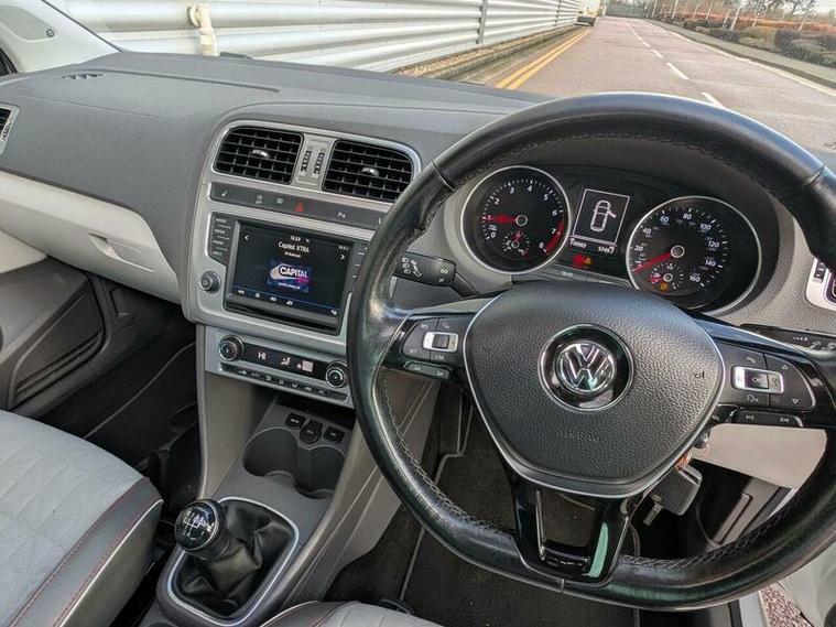 Discover this 2017 Volkswagen Polo TSI Beats, a car that combines style with practicality. This model features a 1.2 litre petrol engine and meets Euro 6 emissions standards, making it an environmentally conscious choice. Inside, you'll find the Discover Navigation Touch Screen system, complete with Car Net Guide and Inform services, ensuring you're always connected and on the right path. For added convenience and safety, it includes a rear view camera with parking assistance and adaptive cruise control. Enjoy the open air with the electric and sliding tilting glass panoramic sunroof, and maintain a comfortable cabin temperature with the electronic climate control.