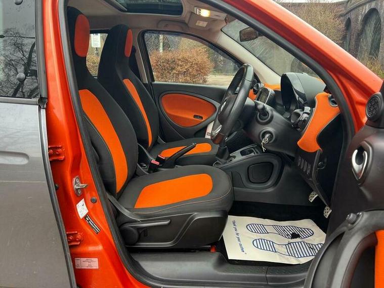 Discover this exceptional 2015 Smart forfour Edition 1, boasting remarkably low mileage for its year at just 57, 000 miles. This stylish city car is powered by an efficient 1.0 litre petrol engine, meeting Euro 6 emission standards. It comes equipped with a host of convenient features, including rear parking assistance with sensors and a rear view camera, automatic headlights that illuminate when needed, and a fixed panoramic roof with sun protection for an airy cabin feel. Inside, you'll appreciate the automatic climate control, ensuring a comfortable temperature no matter the weather.