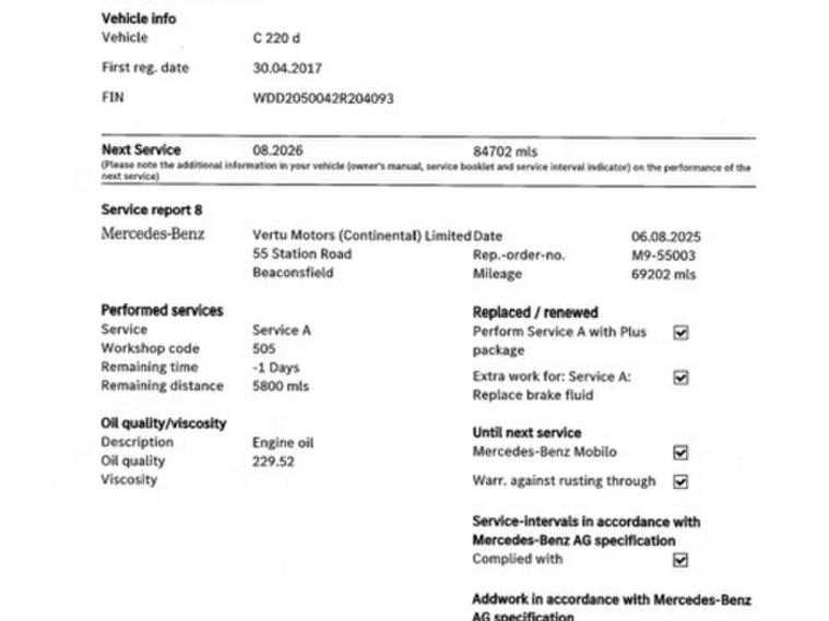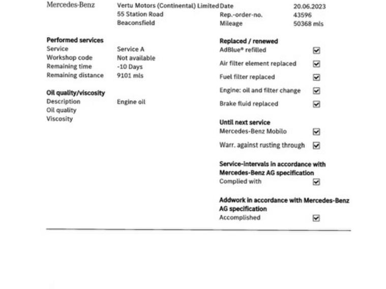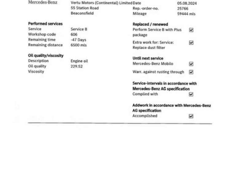 This car comes with 5 seats, Black, 1 owner, 16in Alloy Wheels - Multi-Spoke Design Painted in Vanadium Silver, 7in Colour Display - High-Resolution, ABS - Anti-Lock Braking System, ATTENTION Assist, Active Bonnet - Pedestrian Safety which Detects an Impact and Raises Bonnet, Adaptive Brake Lamps, Adaptive Brake with Hold Function - Hill Start Assist - Brake Drying, Agility Control - Comfort Suspension, Airbags - Dual Stage - Driver and Front Passenger, Airbags - Front Sidebags, Airbags - Pelvisbag, Alarm System with Immobiliser and Interior Protection, Audio 20 CD, Automatic Child Seat Recognition Sensor, Bluetooth Interface for Hands-Free Telephone, Central Locking with Interior Switch - Automatic Locking and Crash Sensor with Emergency Opening Function, Childproof Locks - Manually Operated for Rear Doors and Electrically Operated for Rear Power Windows, Collision Prevention Assist Plus, DAB Digital Radio Tuner, Door Mirrors - Electrically Adjustable and Heated, Drivers Kneebag, Dynamic Select with a Choice of Driving Modes - Comfort - ECO - Sport - Sport Plus - Individual, ESP - Electronic Stability Programme, Electric Parking Brake, Electric Windows - 4 - With One-Touch Opening and Closing - including Obstruction Sensors, Electronic Key - Chrome Surround, First Aid Kit and Warning Triangle, Front Centre Armrest with Stowage Compartment, Front Door Sills with Mercedes-Benz Lettering, Front Seats - Electrical Height and Backrest Adjustment and Four-Way Lumbar Adjustment, Fuel Computer, Gearshift Paddle on Steering Wheel, Headlamps - Halogen with Integrated LED Daytime Running Lamps, Heated Windscreen Washer System, ISOFIX Child Seat Attachment Points with Top Tether in Rear, Illuminated Glove Compartment, Instrument Cluster with Two Tube-Design Round Dials and 5.5in TFT Multi-Function Display, Mercedes Connect Me - Standard Services, Outside Temperature Display, Power Steering - Direct-Steering Speed Sensitive, Pre-Wiring for Garmin Map Pilot Navigation System, Radiator Grille with Integrated Star - Two Louvres in Matt Iridium Silver, Radio Aerial Integrated into Rear Window, Rain Sensing Windscreen Wipers, Remote Boot Release, Reversing Camera, SPEEDTRONIC Cruise Control and Variable Speed Limiter, Seat Belts - Black, Seat Comfort Package, Service Indicator ASSYST, Speakers with FrontBass, Status Display for Rear Seat Belts in Instrument Cluster, Steering Column - Manually Adjustable for Height and Reach, Steering Wheel - 3-Spoke Multi-Function - Trimmed in Leather, Steering Wheel - Multi-Function with Audio and Onboard Settings Control, Stowage - Double Cup Holder in Centre Console, Stowage Package, THERMATIC - Automatic Climate Control - Two-Zone, TIREFIT with Tyre Inflation Compressor, Tail Lights - Partial LED, Tinted Glass All Round - Green, Top Surround of Side Windows in Matt Black, Trim - High-Gloss Black, Two USB Ports and an SD Card Slot in Centre Console, Tyre Pressure Monitoring System, Windowbags for Driver-Front Passenger and Rear Passengers,