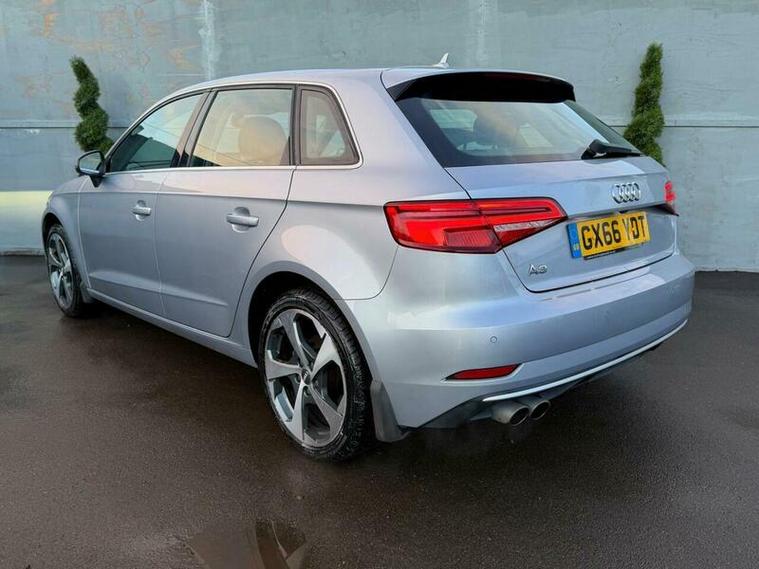 Shapo Wheels Limited presents the Audi A3 2.0 TFSI Sport Sportback S Tronic Euro 6 + AUTOMATIC + PETROL + 5 DOOR + HPI CLEAR + PART SERVICE HISTORY + LAST SERVICED IN JANUARY 2026 + MOT EXPIRY 08/09/2026 + REVERSE CAMERA + APPLE CARPLAY + BANG & OLUFSEN SOUND SYSTEM + BLIND SPOT MONITOR + NAV + BLUETOOTH + FRONT & REAR PARKING SENSORS + HEATED SEATS + AUTO LIGHTS + AUTO WIPERS + AUTO FOLDING MIRRORS + CRUISE CONTROL + ULEZ COMPLIANT + SPARE KEY PRESENT.