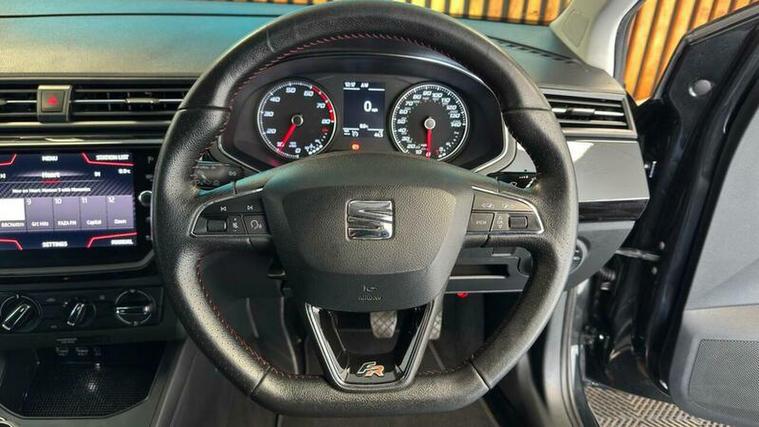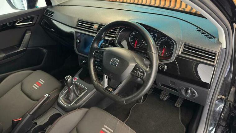This 2018 SEAT Ibiza TSI FR boasts a clear vehicle history and has 1 previous owner, full service history and last service on 30/01/26 including new timing belt, brake pads and brake discs and comes with 2 keys, offering you peace of mind. This stylish hatchback features a 1.0 litre petrol engine, meeting Euro 6 emission standards, and comes with a 3 month warranty for added security. You can stay connected and entertained with Full Link Smartphone Integration, compatible with both Android Auto and Apple CarPlay, alongside a Bluetooth handsfree system for safe calls on the go. Enjoy the convenience of automatic headlights and full LED headlights for enhanced visibility, all while keeping comfortable with air conditioning.