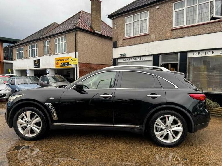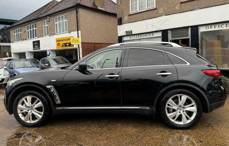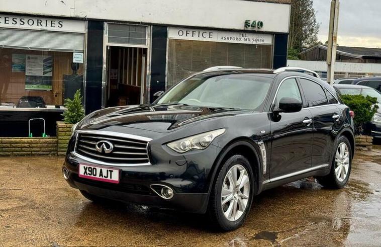 This 2013 Infiniti FX 30d V6 Executive boasts exceptionally low mileage for its age, having covered just 53, 000 miles. This premium SUV features a powerful 3.0 litre V6 diesel engine paired with a smooth four wheel drive system, offering a towing weight of 2200 kg. The Executive trim level ensures a refined driving experience, enhanced by features such as front and rear parking sensors for effortless manoeuvring, and an electric glass sunroof to brighten the cabin.