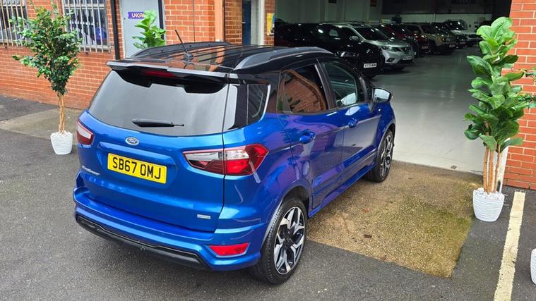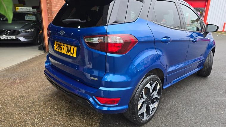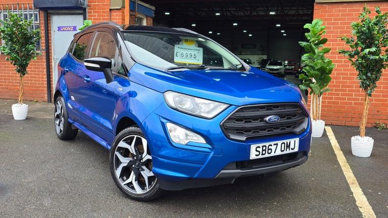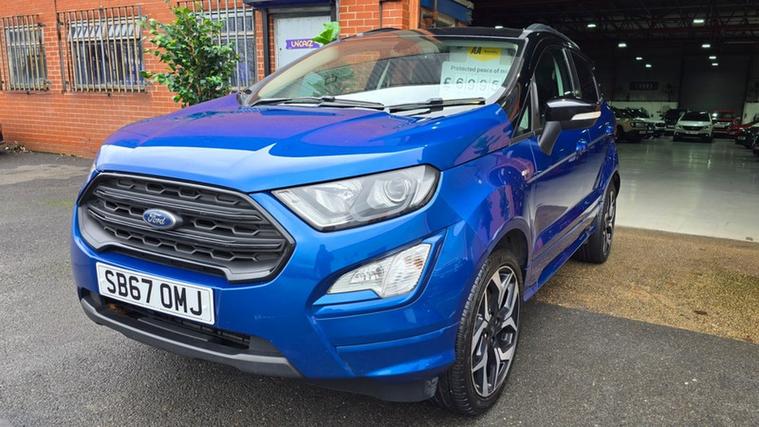 WELCOME TO UNICARZ LTD WE ARE PLEASED TO OFFER YOU THIS 2018 FORD ECOSPORT 1.0 T ST LINE EURO6 MANUAL SUV, 79K SERVICE HISTORY INCLUDING BELT CHANGE AND WATER PUMP, MOT FEBRUARY 2027, 12 MONTHS BASIC ROADSIDE ASSISTANCE, 3 MONTHS STANDARD NATIONWIDE WARRANTY, THE VEHICLE JUST ARRIVED MORE PHOTOS TO COME,
