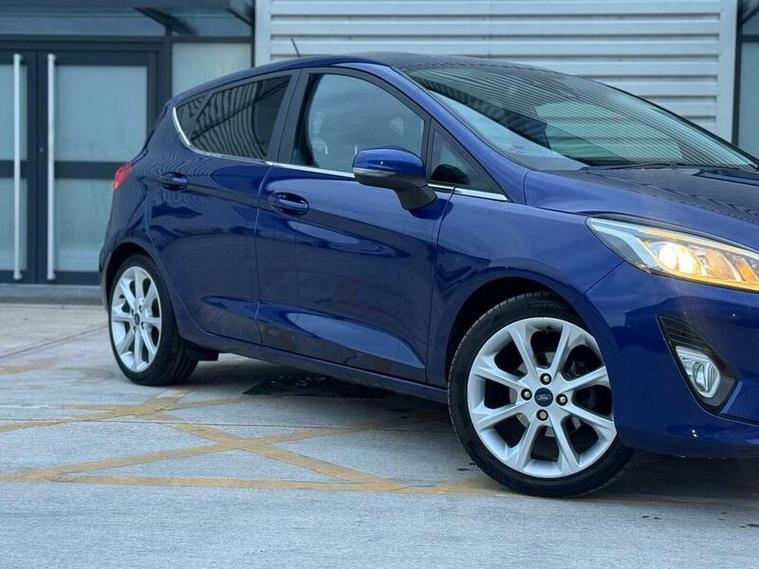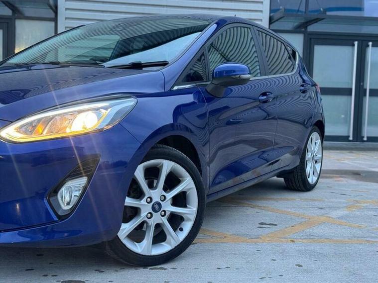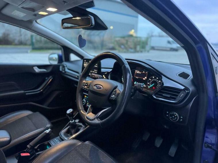 Discover this 2018 Ford Fiesta Titanium X, a superb example of Ford's popular supermini. This model boasts a responsive 1.0L petrol engine and meets Euro 6 emissions standards, making it an efficient choice. Inside, you'll find the impressive B and O PLAY In-Car Audio Premium Sound System, complete with Ford SYNC 3 Navigation that seamlessly integrates with Android Auto and Apple CarPlay. Practicality is enhanced by the Ford Easy Fuel System and power folding door mirrors with puddle lights, while the chrome upper grille adds a touch of style. For added peace of mind, front passenger airbags are included.