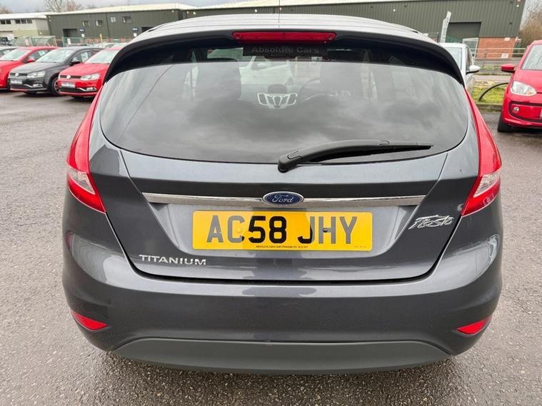 ABSOLUTE CARS have this 5 Door Ford Fiesta 1.4 Titanium in Metallic Grey with 16' Alloys. Please Note this car is recorded as a Category N, this was due to the damage shown in the pictures (7 & 8) that has since been repaired & the price reflects this. Call in for a test drive, finance arranged & part exchange considered., 3 months warranty, Next MOT due 21/01/2027, Last serviced on 22/02/2026 at 58, 036 miles, Full service history, Grey Cloth interior, 5 seats, Metallic Grey, 3 owners, Upgrades - Metallic Paint, Metallic Paint - Hot Magenta, Spare Wheel - 14in x 5.5 Steel Wheel, Standard Features - 16in - Alloy Wheels, 2 Front Speakers, ATC Air Conditioning, Airbag - Driver, Airbag - Driver Seat Head Thorax, Airbag - Front Passenger, Airbag - Front Side, Airbag - Knee Driver, Anti-Lock Brakes (ABS) and Emergency Brake Distribution (EBD), Auto Headlamps, Auto Wipers, Auto Wipers inc. Auto Headlamps, Body Colour Rear Spoiler, Bumpers - Body Colour, Carpet Mats, Centre Rear Seat Belt, Cruise Control, Door Mirrors - Electrically - Operated and Heated, Power Foldable, Driver Seat Height Adjust, Electronic Brake Force Distribution (EBD), Front Fog Lights, Head Restraints Front/Rear, Heated Rear Screen, Immobiliser, Leather Gearknob, Leather Steering Wheel, Map Reading Lights/Aesthetic Lighting, Perimeter Alarm, Power - Assisted Steering, Premier Alarm, Privacy Glass, QuickClear Heated Windscreen, Quickclear Heated Windscreen, Radio/CD, MP3 Compatible with 2-Line Display and Aux In, Reach and Rake Steering Wheel, Rear Wash/Wipe, Remote Control for Audio, Remote Double Locking, Second Remote Ignition Key, Split Rear Seats, Third Brake Light, Trip Computer, Upholstery Cloth, Windows - Power Front One-Shot, AS WE ARE AN AA CARS DEALER THIS VEHICLE COMES WITH 12 MONTHS AA BREAKDOWN COVER.