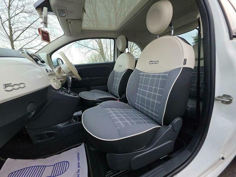 Discover this charming 2017 Fiat 500 Lounge with exceptionally low mileage for its age, boasting just 22, 235 miles. This Euro 6 compliant 1.2L petrol model has had only two previous owners and comes with an MOT valid until January 2027, alongside a clear vehicle history check, a 3 month warranty and 12 month AA Breakdown cover for your peace of mind. Inside, you'll find a 5in touchscreen radio with AUX, USB, DAB, and Bluetooth connectivity, rear parking sensors to aid manoeuvring, and front seats with a handy memory function. Enjoy the open air with the fixed glass roof and its integrated sunblind, and stay comfortable with air conditioning.
