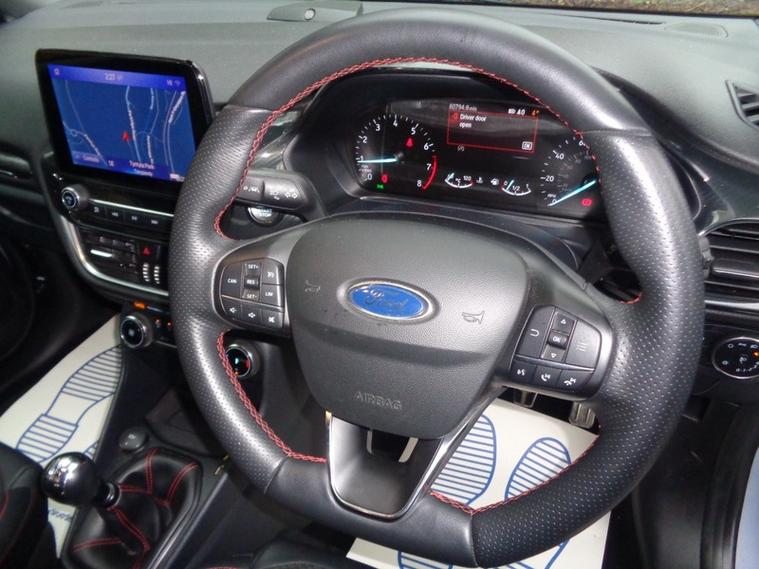 THIS GREAT FIESTA ST LINE x-edition COMES WITH WARRANTED MILES AND SERVICE HISTORY. THE SPEC INCLUDES, 18 INCH ALLOYS, PRIVACY GLASS, PARKING SENSOR, , SAT NAV, HALF LEATHER, BLUETOOTH, CRUISE CONTROL, CENTRAL LOCKING, AUTO CLIMATE CON TROL, CENTRE ARMREST, 6.5 INCH SCREEN BLUETOOTH INCLUDING PHONE CONNECTION MUSIC STREAMING, BRAKE ASSIST, HILL START ASSIST, HEATED WINDSCREEN, STOP START SYSTEM AND ELECTRIC WINDOWS FRONT AND REAR, THE CAR WILL HAVE A NEW MOT ON PURCHASE AND A FREE AA BREAKDOWN RECOVERY. A SPARE KEY IS PROVIDED. NO ADMIN FEE