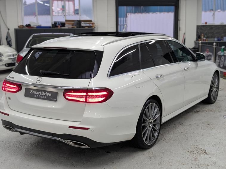 Mercedes Benz E200 AMG Line Premium Auto 2.0 Petrol Automatic Estate White Panoramic Sunroof. 1 Former Keepers, Spare Key, Leather Seats, Heated Seats, Cruise Control, Full Digital Screen, Climate Control, Panoramic Sunroof, Apple/Android Auto, Reverse Camera, SatNav, Keyless Entry, Start&Stop, Memory Seats, Ambient Light, Power Tailgate many others. Service history print outs. Urban 29.4 MPG, Extra Urban 44.8 MPG, and Combined 32.1 MPG. Tax 12 Months Cost £195 and Insurance Group 34.