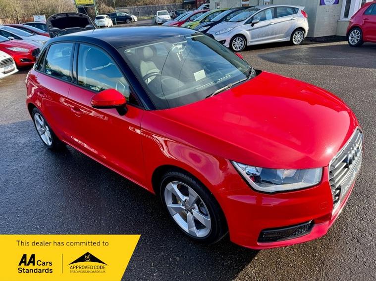 ABSOLUTE CARS have this 5 Door Audi A1 1.4 TFSI Sport Sportback Euro 6 (s/s) in Solid Red with a Contrasting Gloss Black Roof & 5 Spoke Alloys. An Ideal family Car + Only £35 a Year Tax ! Call in for a test drive, finance arranged & part exchange considered., 3 months warranty, Next MOT due 02/11/2026, Last serviced on 30/01/2026 at 83, 657 miles, Full service history, Black Part leather interior, 5 seats, Red, 2 owners, Upgrades - Contrast Roof - Brilliant Black, Acoustic Parking System - Rear, Audi Parking System Plus, Standard Features - 12V Power Socket - Centre Console, 16in Alloy Wheels - 5-Spoke Sport Design, ABS - Anti-Lock Braking System, AMI - Audi Music Interface, ASR - Anti Slip Regulation, AUX-IN Socket, Adaptive Brake Lights, Air Conditioning, Air Vent Sleeves - High Gloss Black, Airbags - Driver, Airbags - Front Passenger, Airbags - Front Side System, Airbags - Head System, Alarm - Thatcham Category 1, Aluminium Trim for Control Switches, Anti Theft Locking Wheel Bolts, Audi Drive Select, Bluetooth Audio Streaming, Concert Radio - MP3-CD Player, Cup Holders - x2 in Centre Console, DAB Digital Radio, Dashboard - Black, Daytime Running Lights, Display Screen - 6.5in High Gloss Black, Display Screen Monochrome - 3.5in Dashboard Binnacle, Door Handles - Aluminium Look Trim, Door Mirrors - Body Coloured with Integrated Indicators, Door Mirrors - Electrically Adjustable and Heated, Door Sill Trims with Aluminium Inlay, Door or Boot Open Warning, Drivers Information System - DIS, EBD - Electronic Brakeforce Distribution, EDL - Electronic Differential Lock, ESP - Electronic Stability Programme, Efficiency Program in the Drivers Information System - DIS, Electric Windows - Front and Rear, First Aid Kit, Floor Mats, Front Fog Lights, Front Passenger Airbag Deactivation Switch, Front Sports Seats, Gear Knob - Leather Sports with Aluminium Trim, Glovebox - Illuminated, Halogen Headlights, Handbrake Grip - Black Leather, Head Restraints - Rear, Headlining - Titanium Grey Cloth, Heat Insulating Glass - Windscreen and Side Windows, Heated Rear Windscreen, Heated Windscreen Washer Jets, ISOFIX Child Seat Preparation for Rear Seats with Top Tether, Immobiliser, Manually Adjustable Lumbar Support in Front Seats, Mobile Telephone Preparation - Bluetooth Interface, Non-Smoking Package, Outside Temperature Display, Polished Tailpipes, Pollen Filter, Power Steering, Remote Central Locking with 2 Fold Away Keys, SD Card Reader x2, Satellite Navigation System - Preparation, Seat Belt Reminder for All Seats, Seats - Front Height Adjustment, Secondary Collision Brake Assist, Speakers x6 - Front and Rear, Split-Folding Rear Seats, Sport Suspension, Steering Wheel - 3-Spoke Leather - Multi-function - Sports, Steering Wheel - Height and Reach Adjustable, Steering Wheel - Multi-function, Tool Kit and Car Jack, Tow Away Protection and Interior Monitoring, Traction Control, Tyre Pressure Monitoring System, Tyre Repair Kit, USB Connection, Voice Control - Telephone, Warning Triangle, Washer Fluid Level Indicator, AS WE ARE AN AA CARS DEALER THIS VEHICLE COMES WITH 12 MONTHS AA BREAKDOWN COVER.