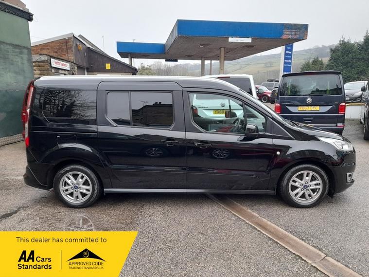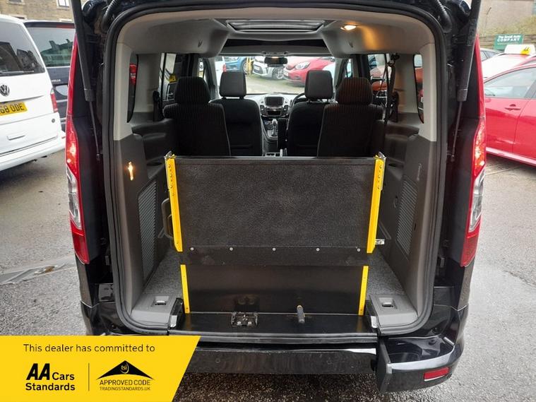 THIS IS A ONE OWNER CAR FROM NEW WITH A FULL SUPPORTING FORD MAIN DEALER SERVICE HISTORY, IN METALLIC BLACK WITH CONTRASTING CHARCOAL INTERIOR TRIM, TOP OF THE RANGE TITANIUM MODEL WITH PANORAMIC ROOF, 2 FRONT AND 2 REAR SEATS GIVING HUGE SPACE FOR WHEEL CHAIR OR SCOOTER, FULL LOWERED REAR FLOOR AND LIGHT WEIGHT FOLD OUT RAMP WITH ALL SUPPORTING FLOOR ANCHORAGE POINTS .......THIS CAR WILL COME FULLY SUPPORTED WITH 12 MONTHS AA BREAKDOWN RECOVERY PACKAGE AND AA NATIONAL WARRANTY ...........ALL PART EXCHANGE WELCOME AND FINANCE CAN BE ARRANGED............