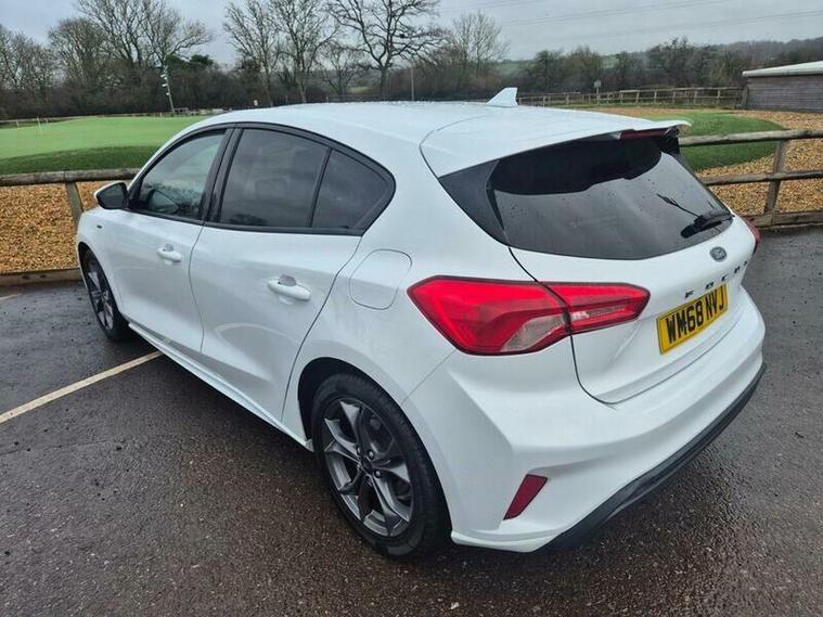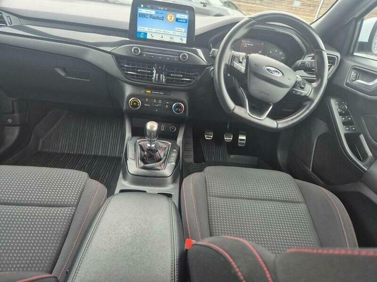 This 2018 Ford Focus ST-Line T offers a Euro 6 compliant 1.0 litre petrol engine and benefits from a recent service completed on 2025-10-03 at 81006 miles, with a partial service history. This model is equipped with the Ford SYNC3 DAB Navigation System, which includes Android Auto, Apple CarPlay, and Bluetooth connectivity, alongside a Ford SYNC3 DAB Radio with a floating 6.5 inch touchscreen. Automatic headlights are also a notable feature, ensuring enhanced visibility.