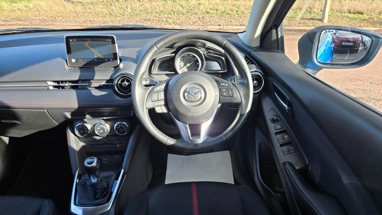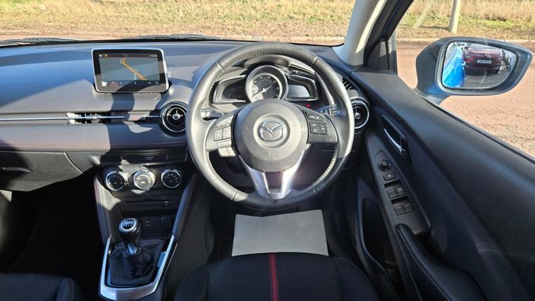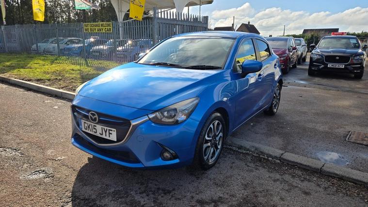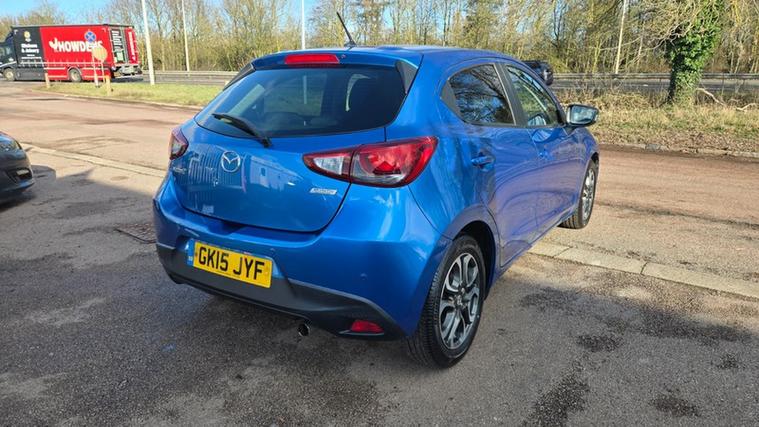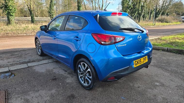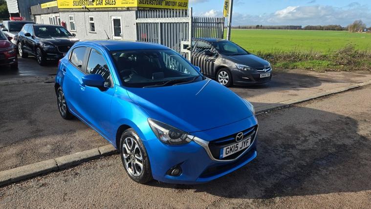 Silverstone Cars presents this 2015 Mazda2 SKYACTIV-G Sport Nav boasts a full service history, with its last service completed on 2026-02-03 at 97, 713 miles, and has had only two owners. This Euro 6 compliant 1.5 litre petrol model comes with a 3 month warranty and a 12 month MOT provided on purchase, ensuring peace of mind. Notable features include rear parking sensors for easier manoeuvring, climate control air conditioning for a comfortable cabin, an integrated Bluetooth system for seamless connectivity, smart keyless entry for convenience, and LED headlights for improved visibility.