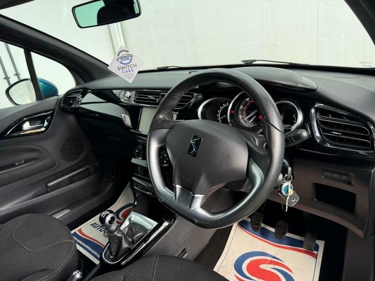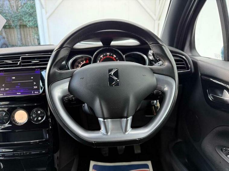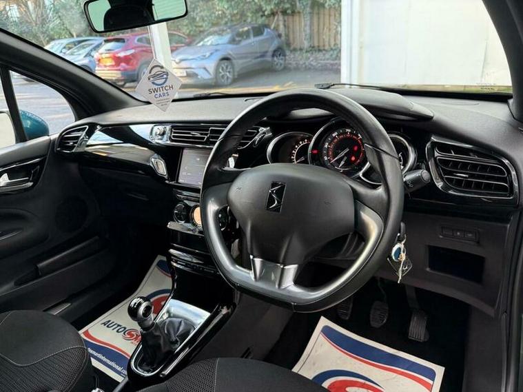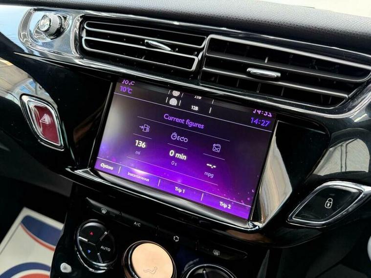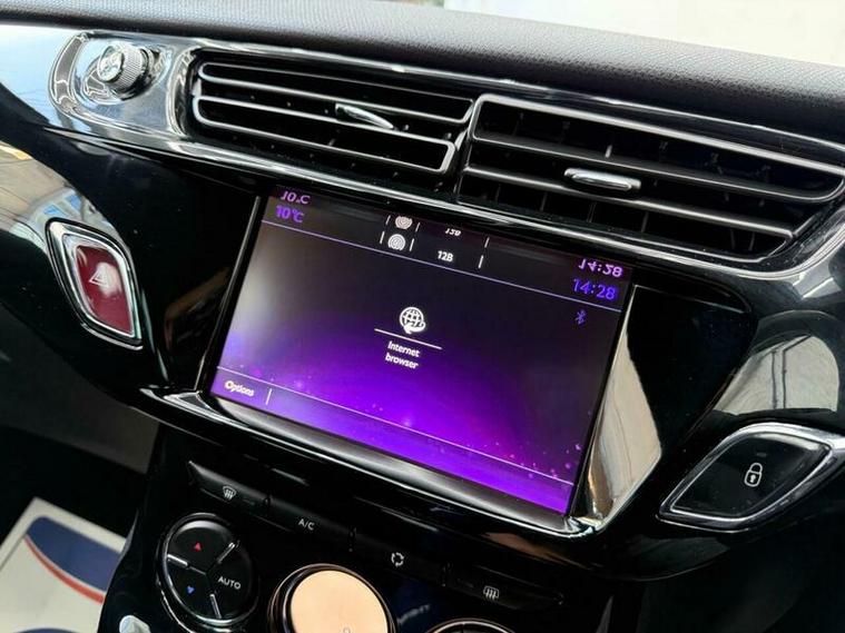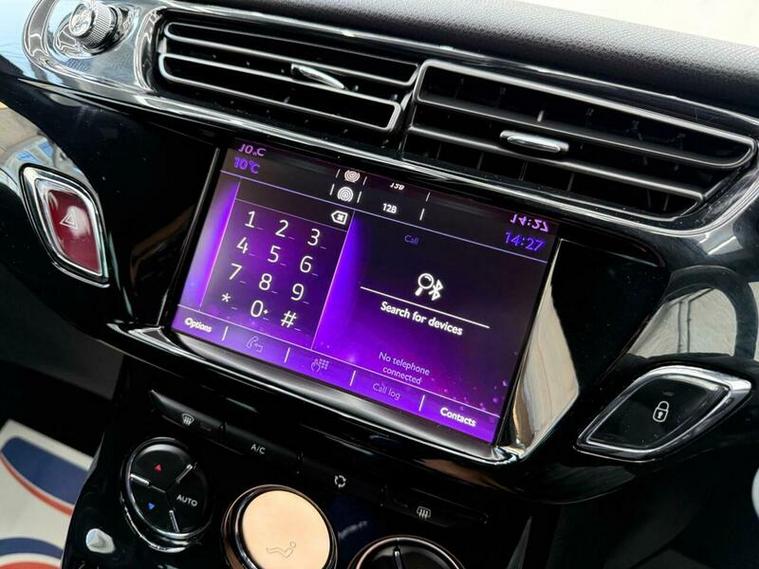 Low finance options available| 2 Keys| Partial Service History| 12MTH MOT|7? Touchscreen| Satellite Navigation| Bluetooth Handsfree & Media Streaming| USB & AUX| DAB Digital Radio| Rear Parking Sensors| Automatic Digital Air Conditioning| LED Daytime Running Lights| 3D LED Rear Lights| Front Fog Lights| Electric Windows| Electric & Heated Mirrors| Dark Tinted Rear Windows| 17? Aphrodite Black Alloy Wheels| Sport Suspension| Leather Steering Wheel with Chrome Inserts| Chrome Exterior Styling| ISOFIX|Split?Folding Rear Seats| Cruise Control with Speed Limiter| ABS, EBD, ESC, Traction Control| Tyre Pressure Monitor|Trip Computer| Stylish & Sporty DS 3 Hatchback