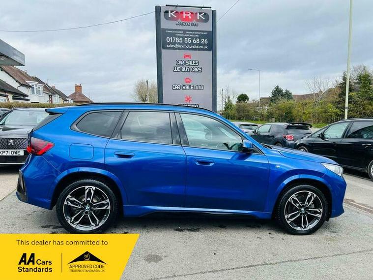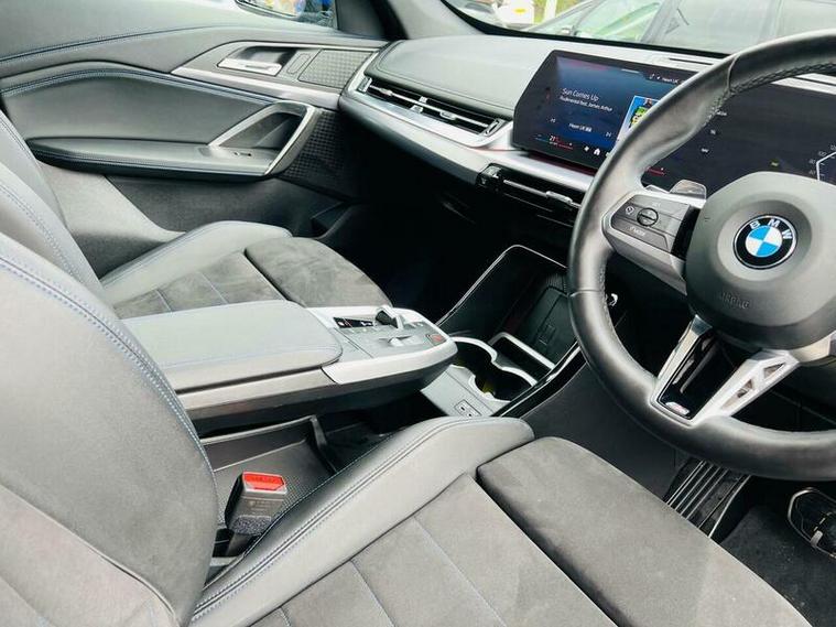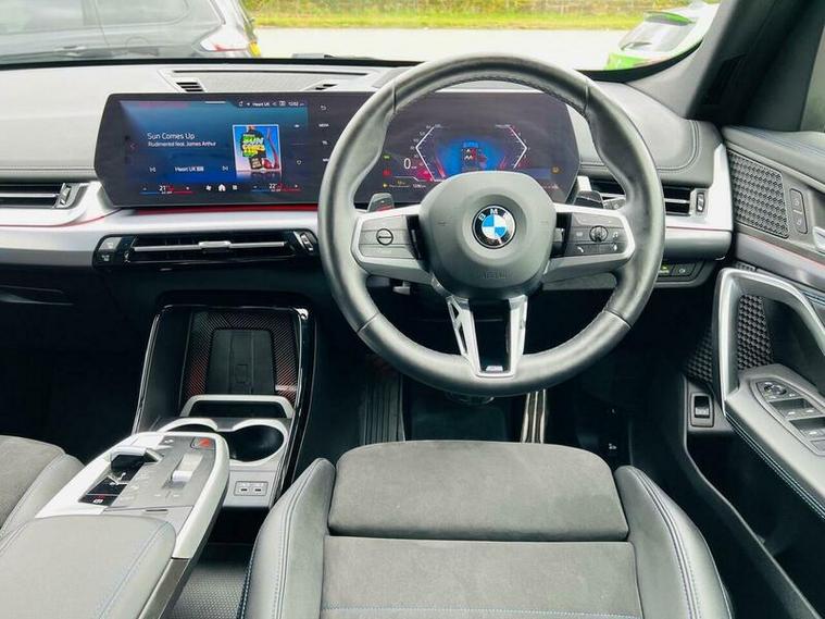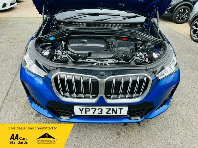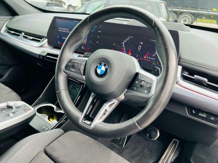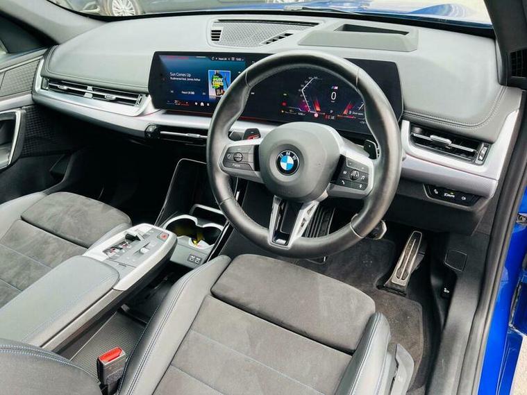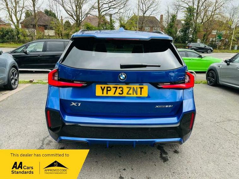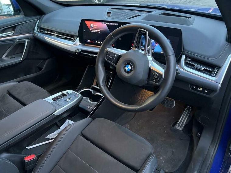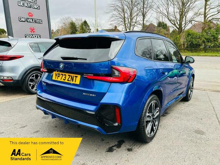 This 2023 BMW X1 23i M Sport presents an exceptional opportunity with its remarkably low mileage of just 9360 miles, having had only one owner from new. This Euro 6 compliant model boasts a powerful 2.0 litre petrol hybrid engine paired with a four wheel drive drivetrain, ensuring confident performance in all conditions. Inside, you'll find the M Sport trim offering a premium feel, complemented by automatic two zone climate control and the advanced BMW Live Cockpit Plus with Bluetooth connectivity. The Technology Package enhances your driving experience with LED headlights that automatically switch on, keyless entry, and convenient wireless phone charging.