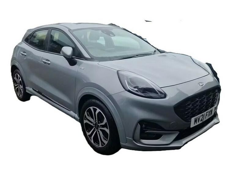 This car comes with 5 seats, Silver, 3 owners, Upgrades - Cloth - Ebony with Red Stitching, Standard Features - 17in Alloy Wheels - 5x2 Spoke - Black Machined Finish, ABS - Anti-lock Braking System, Acoustic Laminated Windscreen, Active Grille Shutter, Automatic Headlights with Rain-Sensing Wipers and Auto High Beam, Centre Console with Armrest - Stowage, Courtesy Lights - Ambient LED Courtesy Lighting - Single Colour, Cruise Control - Lane Keeping Aid and Lane Departure Warning, Driver Seat Lumbar and Height Adjustment, EBA - Emergency Brake Assist, ESC - Electronic Stability Control and Hill Start Assist, Electric Windows - Front and Rear, Floor Mats - Front and Rear, Ford Easy Fuel System, Ford MegaBox Extended Bootspace, Ford SYNC 3 Navigation, Front Bumper - Unique ST-Line Sport Design - Body Colour, Front Fog Lights with Cornering lights and LED Rear Lamps, Full Digital 12.3in Instrument Cluster, Headliner - Deluxe, Instrument Panel - High Level, Locking Wheel Nuts, Lower Bodyside Moulding - Body Colour, Manual Air Conditioning, Post Collision Braking, Power Steering, Power-Foldable Heated Door Mirrors with Puddle Lamps, Pre-Collision Assist with Autonomous Emergency Braking and Pedestrian-Cyclist Detection, Projector Headlamps with LED Daytime Running Lights, Puma Badge, Quickclear Heated Windscreen, Rear Bumper Body Colour - Diffuser, Rear Parking Sensors, Rear Seats - 2-Way Head Restraint Up-Down, Rear Seats - Second Row 60-40 Folding Seats, Restrain Device Pack, ST-Line Badge, ST-Line Bodykit with Large Rear Spoiler and Sports Suspension, Selectable Driving Modes - Normal - Eco - Sport - Slippery and Trail, Speed Limiter, Thatcham Alarm, Traction Control - TC, Trip-Fuel Computer, Tyre Inflation Kit, Tyre Pressure Monitoring System - TPMS, Tyre Repair Kit, Wireless Charging,