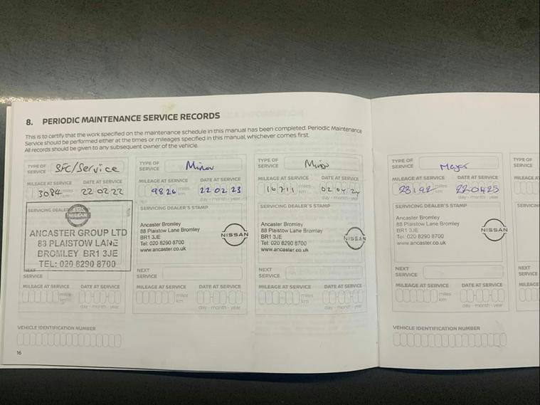 This car comes with 5 seats, Grey, 2 owners, 17in Alloy Wheels, 2 x Cup Holder on Centre Console, 3 Adjustable Rear Head Restraints, 60-40 Split Rear Folding Seats, 7in Full Colour TFT Screen Combimeter, ABS with EBD and Brake Assist, Active Ride Control, Active Trace Control, Android Auto and Apple CarPlay, Auto Dimming Rear View Mirror, Automatic Air Conditioning, Automatic Hazard Signal and Emergency Stop Signal, Body Coloured Handles, Cabin Light Front and Rear, Chrome Interior Door Handles, Cruise Control, DAB Radio, Drive Modes - Sport-Normal-Eco, Driver and Passenger Sun Visor with Vanity Mirror, Driver-Passenger-Side and Curtain Airbags, ESP - Electronic Stability Programme, Electric Heated Auto-Folding Door Mirrors, Electric Parking Brake with Auto Hold Function, Emergency and Breakdown Call, Exterior Mirrors Painted Pearl Black, Front Armrest, Front Door Pockets with Drinks Bottle Holders, Front Seat Belt Height Adjustment, Front and Rear Electric Windows with One Touch Driver Window, Front and Rear Seatbelt Reminder, Grab Handles Passenger and Rear, Headlights - Follow Me Home Function, Headlights - High Beam Assist, Height Adjustable Driver Seat, Hill Start Assist, ISOFIX Child Seat Anchoring Points - Rear x2, Intelligent Emergency Braking with Pedestrian and Cyclist Recognition, Intelligent Key with Start Push Button, Intelligent Lane Intervention and Warning, LED Daytime Running Lights, LED Headlights, LED Rear Fog Lights, LED Rear Lights, Leather Gear Knob, Leather Steering Wheel, Luggage Board System, Luggage Space Lighting, Monoform Sporty Seats, Multifunctional Steering Wheel, NissanConnect 8in Touchscreen Entertainment System, Outside Temperature Sensor, Parking Sensor - Front, Power Assisted Steering, Privacy Glass, Rain Sensing Wipers, Rear Coat Hanger - Drivers Side, Rear Console USB Port, Rear Parking Camera, Rear Parking Sensors, Rear Spoiler, Shark Fin Antenna - Pearl Black, Speakers x6, Speed Limiter, Steering Wheel - Paddle Shift, Syntech Leather Knee Pad, TPMS - Tyre Pressure Monitoring System, Telescopic Steering Wheel Adjustment, Three Blink Turn Signal, Traffic Sign Recognition, Tyre Repair Kit, USB-AUX Socket Input and Bluetooth Connectivity, VDC - Vehicle Dynamic Control, Welcome Light and Console Tray Ambient Lighting, WiFi and Voice Recognition,