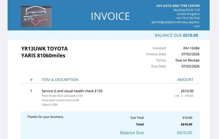 Spent 610£ at the last service and MOT repairs.(receipt attached).