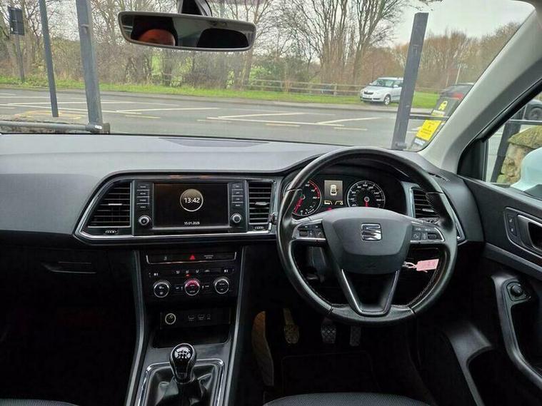 This 2017 SEAT Ateca EcoTSI SE Technology is presented with a partial service history, offering peace of mind with a 12 month MOT provided on purchase. This Euro 6 compliant 1.4 litre petrol model boasts a smooth drive and comes equipped with desirable features including full LED headlights for excellent visibility, rear parking sensors to aid manoeuvring, and dual zone climate control to ensure comfort for all occupants.