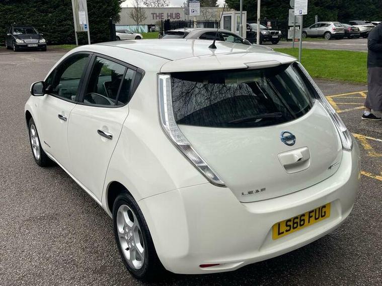 This 2016 Nissan Leaf Acenta has been cherished by only two owners, offering a well maintained electric driving experience. As an electric vehicle, it boasts a 30 kWh battery with a maximum range of 153 miles when new. Charging is convenient, taking approximately 9 hours for a full charge at home using a 7kW charger, while rapid public charging can take you from empty to 80% in just 30 minutes. This Acenta model comes equipped with a distinctive Rear Roof Spoiler featuring Solar Cells, alongside the Nissan Intelligent Key with Engine Start Button for keyless entry. You'll also find Bluetooth Telephone Integration, Automatic Headlights, and the NissanConnect EV Telematics System which includes Bluetooth and a rear parking camera.