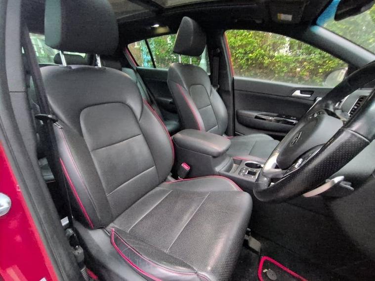 This car comes with 5 seats, Red, 2 owners, 10-Way Drivers and 8-Way Passengers Power Adjustable Seat, 12V Power Sockets - Front and Rear Consoles, 19in Alloy Wheels B-Type, 3 x Passenger Assist Grips, 360 Degree Around View Monitor, 4.2in Supervision Colour Cluster Display, 60-40 Split Folding Rear Seats, 8-Speaker JBL - Premium Sound System with Subwoofer - External Amp and Front Centre Speaker, 8in Touchscreen Satellite Navigation with European Mapping and Traffic Messaging Channel - TMC, Advanced Anti-Theft System including Immobiliser and Alarm, All-Round 3-Point Seatbelts, All-Round Electric Windows with Driver and Front Passenger Auto Up-Down Function, All-Round Height Adjustable Headrests, Aluminium Door Scuff Plates, Aluminium Pedals, Android Auto with Voice Control, Anti-Lock Braking System - ABS with Electronic Brakeforce Distribution - EBD, Apple CarPlay with Voice Control, Auto Dimming Rear-View Mirror, Automatic Headlight Control, Black Wheel Arch Body Mouldings and Side Sills with Dark Chrome Insert, Blind-Spot Collision Warning - BCW, Bluetooth with Music Streaming, Body Coloured Door Mirrors, Body Coloured Exterior Door Handles with Chrome Insert, Centre Console Storage Box, Centre Fascia - Black High Gloss, Child Safety Rear Door Locks, Chrome Boot Sill Guard, Chrome Window Surrounds, Coat Hooks - Rear, Cupholders in Rear Armrest, DAB Radio with MP3 Compatibility, Dark Chrome Front Bumper Insert, Dark Chrome Front Grille Surround, Door Deadlocks, Drive Mode Select, Driver Attention Warning - DAW, Driver and Passenger Sunvisors with Vanity Mirror and Illumination, Drivers Seat Power Lumbar Support, Drivers Wide View Door Mirror, Dual Automatic Air Conditioning, EcoDynamics Badge, Electrically Folding-Adjustable and Heated Door Mirrors with LED Indicators, Electronic Parking Brake, Electronic Stability Control - ESC - with Downhill Brake Control - DBC, Emergency Stop Signalling - ESS, Engine Start-Stop Button with Smart Entry System, Exhaust - Dual, Forward Collision-Avoidance Assist - City - Pedestrian, Front Cabin LED Map Light with Sunglasses Case, Front Door Courtesy Reflectors, Front Parking Sensors, Front Passenger Airbag Cut Off Switch, Front Seatback Pockets, Front Seatbelt Height Adjusters, Front Wiper De-Icer, Front and Rear Centre Armrests, Front and Rear Door Storage, Gear Shift Indicator, Glovebox with Illumination, Head Rests - Front Active, Headlights - High Beam Assist - HBA, Headlining - Black, Heated Front and Outer Rear Seats, Heated Steering Wheel, Hill-Start Assist Control - HAC, ISOFIX Child Seat Top Tethers and Anchor Fixings, Impact Sensing Auto Door Unlocking, Interior Door Lock-Unlock Function, Kia Connected Services Featuring TomTom - Traffic - Speed Cameras - Local Search and Weather Updates, LED Bi-Function Headlights, LED Daytime Running Lights, LED Ice-Cube Front Fog Lights, LED Rear Tail Lights, Lane Keep Assist System - LKAS, Leather Trimmed Door Armrests, Leather Trimmed Gearshift, Locking Wheel Nuts, Luggage Area Light - LED, Luggage Area Load Cover, Luggage Net Hooks, Panoramic Sunroof - Electric One Touch with Safety Function, Power Steering, Privacy Glass - Rear Windows and Tailgate, Radiator Grille - Gloss Black Blade Mesh, Rain Sensing Front Wipers, Rear Parking Sensors, Rear Spoiler, Rear USB Charging Port, Rear Ventilation Duct, Reversing Camera System, Roof Rails, Satin Chrome Interior Door Handles, Shark Fin Antenna, Side Cabin LED Lights, Silver Painted Front and Rear Skid Plates, Smart Cruise Control with Stop and Go Functionality, Smart Power Tailgate, Speed Limit Information Function - SLIF, Speed Sensing Auto Door Locking, Steering Wheel - D-Shaped Sports Leather with Perforated Inserts and GT-Line Logo, Steering Wheel - Paddle Shift, Steering Wheel Mounted Audio Controls, TMK - Tyre Mobility Kit, TSA - Trailer Stability Assist, Tilt and Telescopic Steering Wheel Adjustment, Tinted Glass, Trip Computer, Twin Curtain Airbags with Roll-Over Sensor, Twin Front Airbags, Twin Side Airbags - Front, Tyre Pressure Monitoring System - TPMS, USB Port for Connection of a Media Device, Ventilated Front Seats, Visible Vehicle Identification Number - VIN, Welcome and Follow-Me-Home Light Functionality, Windscreen Washer Level Warning, Wireless Phone Charger,
