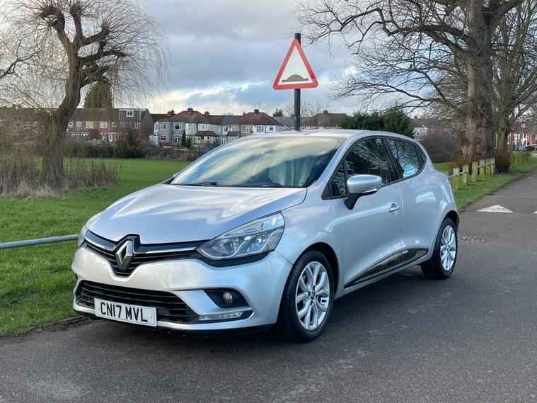 SERVICE HISTORY (7 stamps, just serviced), 2 KEYS, £20 A YEAR ROAD TAX, This 2017 Renault Clio TCe Dynamique Nav is a standout choice, having been cherished by only two owners. It features a responsive 0.9 litre petrol engine and meets Euro 6 emissions standards. Inside, you'll find manual air conditioning to keep you comfortable, the Renault MediaNav system for your entertainment and connectivity needs including Bluetooth, and a handsfree keycard with push button start and stop, offering convenient keyless entry.