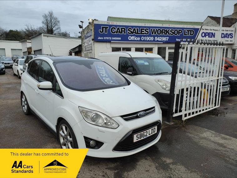Discover this 2013 Ford C-Max Titanium X with exceptionally low mileage for its age, boasting just 66, 781 miles. This 1.0L petrol model comes with a clear vehicle history check, offering peace of mind. Inside, you'll appreciate the comfort of heated driver and passenger seats, and the convenience of dual zone climate control. The Titanium X trim also includes a striking panorama roof with a fixed panoramic sunroof, and Bi-Xenon headlights for excellent visibility. Stay connected on the go with the integrated Bluetooth hands-free phone system., , This Ford C-Max stands out with its impressive fuel economy, achieving up to 55 miles per gallon, which is a significant advantage for running costs compared to many other vehicles. You'll also benefit from a large boot space, perfect for shopping trips or family holidays, and low CO2 emissions, making it an environmentally conscious choice., , Ford C-Max 1.0T EcoBoost Titanium X Euro 5 (s/s) 5dr - in good working order - 1.0 eco car with very low mileage, ideal family car, low tax and insurance groups, in nice colour, , , Good bodywork, Interior - Clean Condition, Tyre condition Good, 5 seats, White, 5+ owners, 12V Power Socket - Additional Rear, 12V Power Socket - Front, 17in Alloy Wheels - 5x2 Spoke - Premium, 2nd row airvents, 4.2in TFT Display, ABS - Anti-lock Braking System, AUX Input Socket, Air Conditioning - Dual Zone Electronic Automatic Temperature Control, Airbag - Front Passenger, Airbags - Driver, Airbags - Front and 2nd Row Curtain, Airbags - Side Impact, Alarm - Thatcham Category 1 with Volume Sensing and Perimeter, Anti-roll protection, Automatic Dimming Rear View Mirror, Automatic Rain Sensing Wipers, Bi-Xenon Headlights, Bluetooth Hands-free Phone, Brake Warning Lights - Automatic Flashing of Brake Lights Under Heavy Braking, Branded integrated control panel, CD storage, Centre Console - Premium with Sliding Armrest Stowage Bins and 12v Front and Rear Sockets, Centre console - bright finish cup holder surrounds, Child Observation Mirror, Comfort Rear Seat System, Courtesy Light - Footwell Illumination, Courtesy Light - Front and Rear Reading Lights, Courtesy Light - LED Overhead and Load Compartment, Cruise Control with Adjustable Speed Limiter, DDS - Deflation Detection System, Door lever - Satin Chrome finish, Drivers Seat Lumbar Support, EBA - Emergency Brake Assist, EBD - Electronic Brakeforce Distribution, ESP - Electronic Stability Programme, Electric Windows - Front and Rear with One Touch, Electric Windows - Global Opening-Closing, Emergency Assistance, Floor Mats - Front Velour with Ford Logo, Ford Easy Fuel System, Ford Easy-Fuel Capless Refuelling System, Ford Power Engine Start-Stop Button, Ford SYNC, Front Fog Lights, Front Seat - Passenger Manual Height Fore-Aft Adjustment, Front Seat - Passengers Manual Lumbar Support Adjustment, Front suspension - Independent with MacPherson Struts, Fuel Computer, Gearshift Knob - Leather, Headlights - Automatic, Headlights - Courtesy Delay, Headlights - Jet Wash, Headliner - Luxury Woven, Heated Driver and Passenger Seats, Heated Front Windscreen, Hill Start Assist, IPS - Intelligent Protection System, LED Ambient Courtesy Lighting, Locking Wheel Nuts, Outside temperature thermometer, Overhead Console - Map Reading Lights and Sunglasses Holder, Overhead Console - Mood Lighting, Overhead console - A5 stowage, Panorama Roof, Power Driver Seat, Power Fold Door Mirrors, Power Steering, Rear Seats - Three 2nd Row Individual Fold Flat Seats with Height Adjustable Head Restraints, Remote Central Locking, Remote multifunction display controls, Scuff plates - Front aluminium-finish with Ford logo, Seats - Drivers Manual Height and Fore-Aft Adjustment, Sony DAB Audio System, Sony Radio-CD, Speakers - x9, Speed Limiter - Adjustable, Steering Column - Rake and Reach Adjustment, Steering Wheel - 4 Spoke Leather Trimmed, Steering Wheel - Multifunction, Stowage Boxes - Two underneath rear passengers foot area, Sun Blinds - Power, Traction Control - TC, Tyre Repair Kit, USB Connection - iPod Connectivity, Variable Dimming of Instrument Cluster and Radio Screen Display, Voice Control - Audio, Z-Shape Handbrake, JT Car Sales Worksop LTD is a family run business Est in 2014. Selling quality used cars at affordable prices, we offer Warranty Wise and Finance on all our vehicles - We can finance cars at any prices, please ask office for more details - FINANCE AVAILABLE, we take in part exchange towards any of our cars, we are a AA dealer approved company, we make sure all our cars come with a minimum 6 months mot, test drive / inspection welcome any time, HPi report can be requested on any vehicles, we aim to provide the best service possible - we help all our customers in office to complete all docs at the point of sale and can help with insurance if needed, All list if stock vehicles can be find on our profile page / website - you can find us on 118 Gateford road, Worksop, s80 1ue, dealer's website Car 42 -SB62LDD