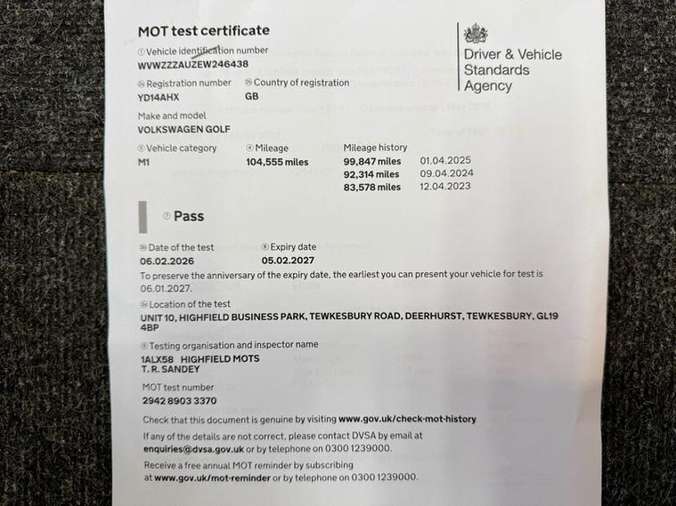 ABSOLUTE CARS have this 5 Door Volkswagen Golf 1.4 TSI BlueMotion Tech SE Euro 5 (s/s) in Metallic Grey with Alloys. Call in for a test drive, finance arranged & part exchange considered., 3 months warranty, Next MOT due 05/02/2027, Last serviced on 06/02/2026 at 104, 555 miles, Part service history, Grey Cloth interior, 5 seats, Metallic Grey, 2 owners, 12V Socket, 12V Socket - Luggage Compartment, 16in Alloy Wheels - Toronto, ABS - Anti-Lock Braking System, ADC - Automatic Distance Control, ASR - Anti Slip Regulation, Air Conditioning - Manual, Airbags - Curtain Front and Rear, Airbags - Driver, Airbags - Drivers Knee, Airbags - Front Passenger, Airbags - Front Passenger with Deactivation Switch, Airbags - Front Seat Side Impact, Alarm with Interior Protection, Armrest - Front Centre with Ventilation Nozzles x2, Automatic Dimming Rear View Mirror, Aux-In Socket, Bluetooth Telephone Preparation, Body Coloured Bumpers and Door Handles, Body-Coloured Door Mirrors with Integrated Indicators, Brake Pad Wear Indicator, Central Locking - Remote with 2 Remote Keys, Child Locks in Rear Doors, City Emergency Braking System, Composition Media System, Convenience Pack, Cruise Control, Cup Holders - Front and Rear, DAB - Digital Radio Reception, Daytime Running Lights, Decor - Brushed Stainless Steel, Differential Lock - Electronic, Door Mirrors - Electrically Adjustable and Heated, Driver Alert System, Driver Profile Choices, Dust and Pollen Filter, ESP - Electronic Stability Programme, Electric Windows - Front and Rear, Electronic Parking Brake with Auto Hold Function, Exhaust Tailpipes - Twin, First-Aid Kit and Warning Triangle - Holder Only, Front Assist including City Emergency Braking, Front Seat Back Storage Pockets, Full Size Steel Spare Wheel, Glovebox - Illuminated - Cooled - Lockable, Grab Handles - Front x2 Rear x2 with Coat Hooks, HBA - Hydraulic Brake Assist, Head Restraints - Front Whiplash Optimised, Headlights - Coming-Leaving Home Function, Headlights - Dusk Sensor - Automatic Driving Lights, Headlights - Halogen Clear - Range Adjustable, Heated Rear Windscreen, Height and Reach Adjustable Steering Column, Height-Adjustable Front Three-Point Seat Belts with Tensioners, High Level 3rd Brake Light - LED, ISOFIX Child Seat Preparation for 2 Rear Seats, Instrument Lighting - White Adjustable Panel Illumination, Leather Trimmed Three-Spoke Steering Wheel and Gear Knob, Lighting Dial - Chrome Look, Lights on Warning Buzzer, Load Lashing Points x4 in Luggage Compartment, Load-Through Provision, Luggage Compartment - Hooks, Luggage Compartment Cover, Luggage Compartment Light, Luggage Compartment Storage Area on Right, MDI - Multi Device Interface, Multifunction Computer - 3.5in Display, Multifunction Computer - includes Visual Gear Change Recommendation, Multiple Impact Brake Activation, Power Assisted Steering - Speed Sensitive, Pre-Crash Preventive Occupant Protection, Push - Push Tank Flap, Radar Sensor Controlled Distance Monitoring System, Radiator Grille - Black with Chrome Louvres, Radio & Single CD Player MP3 Compatible, Rain Sensor, Reading Lights - Front x2 and Rear x2, Rear Centre Armrest, Rear Diffuser - Black, Rear Windscreen Wiper with Intermittent Wipe Function, SD Card Reader, Safeguard Against Incorrect Fuel, Seatbelt Reminder, Seats - Front Comfort, Seats - Front Lumbar Support, Seats - Height Adjustment - Front, Seats - Rear Backrest with Automatic Folding, Spare Wheel - Space Saver, Speakers x8, Split Folding Rear Backrests 60-40, Spoiler - Tailgate, Steering Wheel - Audio Controls, Storage - Cover for Area in Roof Console, Storage Compartment in Centre Console Covered, Storage Compartment in Front Doors, Storage Compartment in Rear Doors, Storage Compartment in Roof Console, Sun Visors - Vanity Mirrors and Illuminated, Temperature Display - External, Three Rear Head Restraints, Tinted Glass - Heat Insulating, Tyre Pressure Monitoring System - Electronic, Under Seat Drawers - Front, Variable Boot Floor, XDS Electronic Differential Lock, AS WE ARE AN AA CARS DEALER THIS VEHICLE COMES WITH 12 MONTHS AA BREAKDOWN COVER.