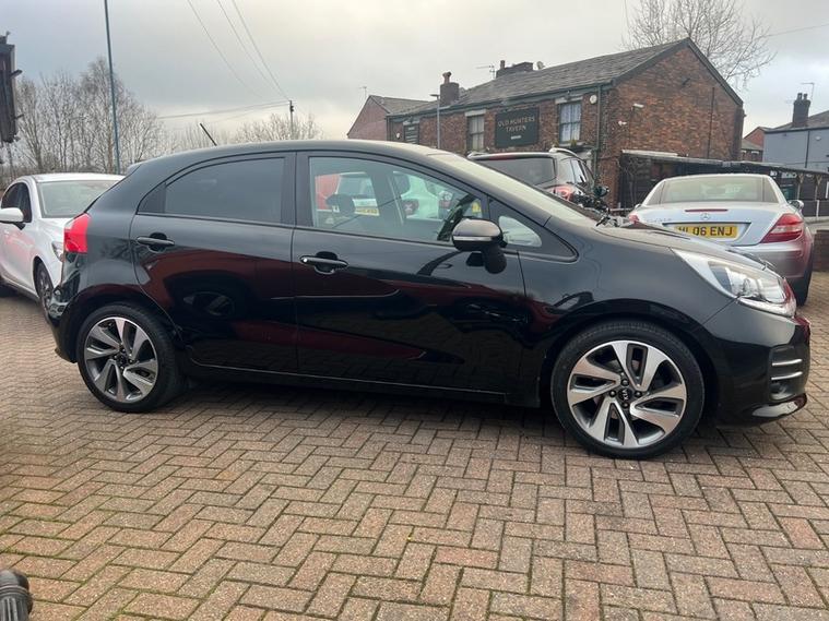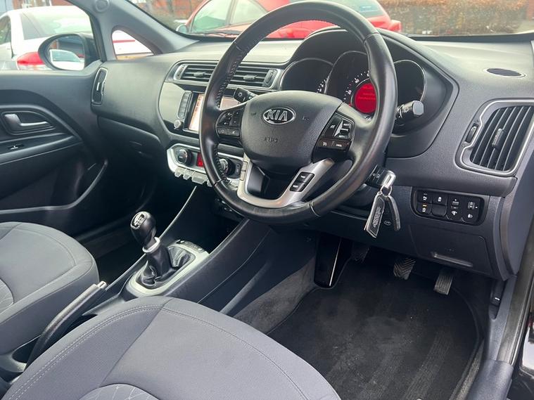 Steve Pearson Car Sales are Pleased to Present this Low Mileage Kia Rio 1.4 3 ISG 5 Door in Black. Only One Former Keeper with Full Service History. **£35 Road Tax**All usual Kia refinements include.... ABS, Air conditioning, alloy wheels, central locking, climate control, electric windows/mirrors, power steering, adjustable steering, heated seats, 12v power socket, USB/AUX input, bluetooth, body coloured bumpers, brake assist, cruise control, cup holders, daytime running lights, ESP front airbags, front fog lights, heated door mirrors, ISOFix anchor point, MP3, touch screen media system, parking sensors, satellite navigation, radio, side impact airbags, speakers, start stop system, steering wheel controls etc....Looks and Drives Superb. Car comes with 2 Keys, professionally valeted and fully HPI checked. We welcome Part Exchange and can offer Great Finance Deals, Please take a look at our virtual showroom at dealer's website where we have over 60 cars in stock, for more information please telephone or pop in for a cup of tea! Our showroom and floodlit forecourt are open 7 days a week, Tameside's Finest Collection of Low Mileage Quality Cars