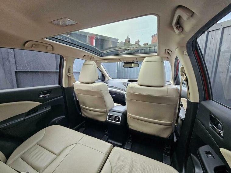 This 2016 Honda CR-V i-DTEC EX boasts a single owner and remarkably low mileage for its age, having covered just 78, 217 miles. As a Euro 6 compliant model, it features a capable 1.6 litre diesel engine paired with a four wheel drive system, offering a blend of efficiency and all weather confidence. The EX trim level ensures a well equipped experience, with front and rear parking sensors to aid manoeuvrability, adaptive cruise control for relaxed journeys, and dual zone climate control for personalised comfort. Furthermore, the panoramic glass roof floods the cabin with natural light, enhancing the sense of space.