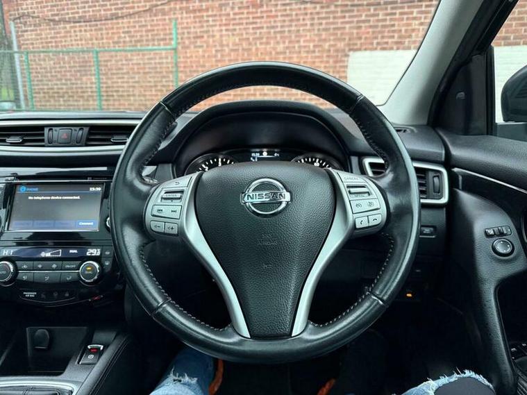 This 2015 Nissan Qashqai dCi Tekna boasts a clear vehicle history, offering you peace of mind. This stylish Tekna trim model is equipped with a 1.6L Diesel engine and meets Euro 6 emission standards. Inside, you'll find comfortable heated front seats, and for convenience, it features automatic headlights, Bluetooth integration for your phone, and both front and rear parking sensors to assist you with manoeuvring.