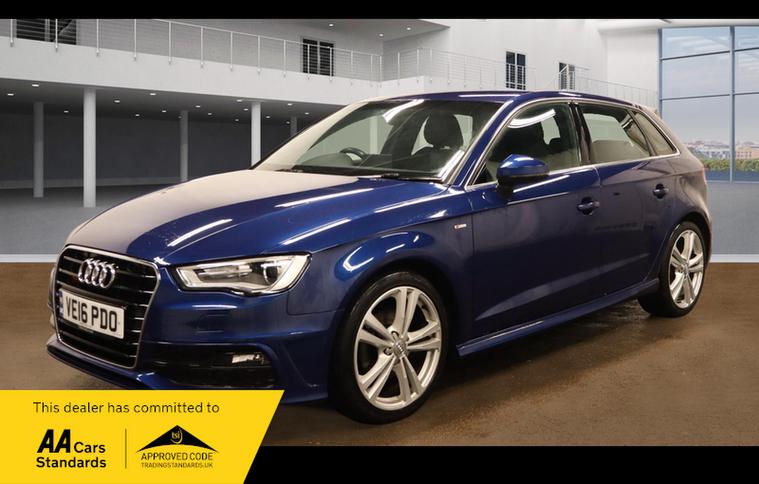 HERE WE HAVE AN OUTSTANDING Audi A3 2.0 TDI S line Sportback 5dr Diesel S Tronic Euro 6 (s/s) (Nav) (150 ps) FOR SALE IN THE POPULAR BLUE COLOUR. THIS CAR COMES WITH FULL SERVICE HISTORY, 3 MONTHS EXTENDED WARRANTY FOR FREE, 12 MONTHS AA BREAKDOWN COVER FOR FREE WITH AN MOT EXPIRY DATE OF.25-02-2027 THIS CAR COMES FULLY EQUIPPED WITH.AIR CONDITIONING 18ALLOYE HALF LEATHER TRIM PARKING SENSORS 2 KEYS SPEARE WHEEL 2 OWNERS ULEZ COMPLIANT EXCELLENT MPG READY TO GO 3 to 24 MONTHS WARRANTY IS AVAILABLE TO PURCHASE. WE ACCEPT ALL MAJOR CREDIT CARDS AND DEBIT CARDS TO BOOK A TEST DRIVE PLEASE CALL US ON 01234532371R 01234532371 WE ARE OPEN FROM 10:00 TO 18:00 MONDAY TO SATURDAY 11:00 UNTIL 16:00 ON SUNDAYS INCLUDING BANK HOLIDAYS WE DELIVER THE CAR TO YOU Ts&CS APPLY' PART EXCHANGE WELCOME' FULL FCA APPROVED COMPANY REGISTRATION 13047526 FOR MORE CARS PLEASE VISIT OUR WEBSITE ARUSEDCARSLIMITED dealer's website OUR ADDRESS IS AMPTHILL ROAD KEMPSTON HARDWICK BEDFORD MK45 3JE. 0% DEPOSIT FINANCE AVAILABLE WE ARE 2 MINUTES AWAY FROM BEDFORD INTERCHANGE RETAIL PARK