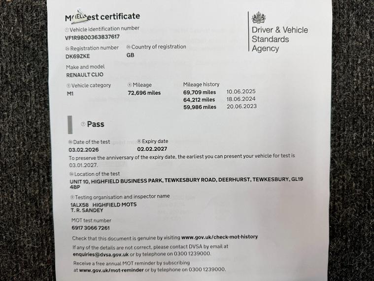 ABSOLUTE CARS have this 5 Door Renault Clio 0.9 TCe Iconic Euro 6 (s/s) in Metallic Grey with Alloys. An Ideal First Car. Call in for a test drive, finance arranged & part exchange considered., 3 months warranty, Next MOT due 02/02/2027, Last serviced on 17/09/2025 at 70, 992 miles, Full service history, Black Cloth interior, 5 seats, Metallic Grey, 2 owners, Upgrades - Cloth - Dark Carbon with Mesh Inserts and Grey Piping, 15in Spare Wheel, Fixed Glass Panoramic Sunroof, Standard Features - 1.2L Storage Shelf Above Glovebox, 12V Power Socket - Front, 17in Alloy Wheels - Black, 2 Storage Spaces for 1 Cup and Miscellaneous Items near Handbrake, 4L Front Glovebox, ABS with EBA - Emergency Brake Assist, Air Conditioning - Manual, Airbags - Deactivation - Front and Side - Driver and Passenger, Anti Drill Door Locks and Locking Fuel Cap, Anti-Pinch Function on Front Electric Driver Window, Black Gloss Side Door Protection with Chrome Insert, Black Soft Touch Dashboard with Black Gloss Air Vent Surrounds, Bumpers - Body Coloured, Chrome Side Window Surround, Cruise Control with Speed Limiter, Daytime Running Lights - LED, Deadlocking, Door Handles - Body Coloured - Front, Door Mirrors - Body Coloured - Electrically Adjustable and Heated, Driver Seat Belt Height Adjustable, Driver and Passenger Front - Side - Head and Thorax Airbags, ESC - Electronic Stability Control, ETC - Electronic Traction Control, Eco Mode, Electric Windows - Front, Exterior Chrome Touches - Front Grille Strips - Boot Lid Strip, Exterior Rear Hidden Door Handles, Extra Tinted Windows - Rear and Tailgate, Front Dash Warning Indicator in Case of Heavy Braking, Front Fog Lights, Front and Rear No Seatbelt Warning Sound, Gear Change Indicator, HSA - Hill Start Assist, Handsfree Keycard with Push Button Start-Stop Function, Headlights - Halogen, Headrests - Rear x3, Heating System with Pollen Filter, ISOFIX Child Seat Fixing Points on Rear Outermost Seats, MediaNav Multimedia System, Parking Sensors - Rear, Power Assisted Steering - Electric Variable, RAID - Renault Anti Intruder Device - Automatic Door Locking, Rear Door and Window Child Locking Function - Front Driver Door Control Panel for Rear Door, Rear Fog Light, Rear Seats - 60-40 Split and Fixed Base, Rear Spoiler - Body Coloured, Remote Central Locking with Thatcham Approved Immobiliser - Thatcham Cat 2, Seats - Drivers Height Adjustment, Steering Wheel - Height and Reach Adjustable, Steering Wheel - Synthetic Leather, Trip Computer, Tyre Pressure Warning Light, Variable Speed on Front Windscreen Wipers, Windscreen Wipers - Rear, AS WE ARE AN AA CARS DEALER THIS VEHICLE COMES WITH 12 MONTHS AA BREAKDOWN COVER.